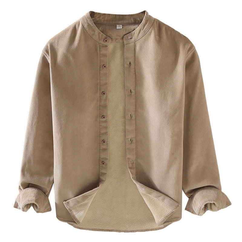Flannel-lined Thick Warm Corduroy Small Stand-collar Shirt Jacket