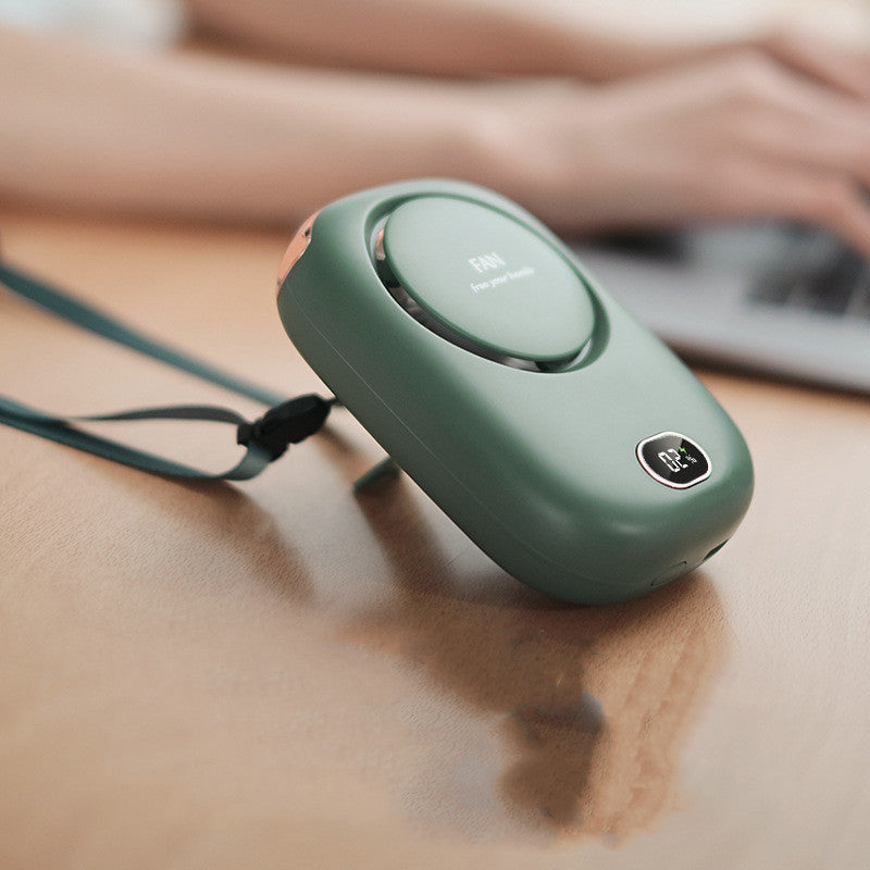 Lazy Leafless Hanging Neck Fan Digital Display Silent