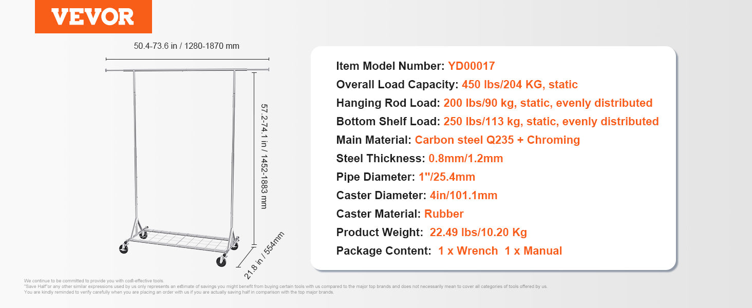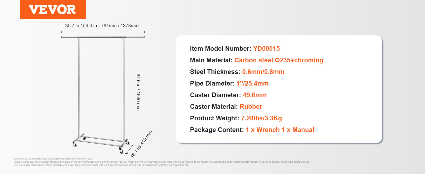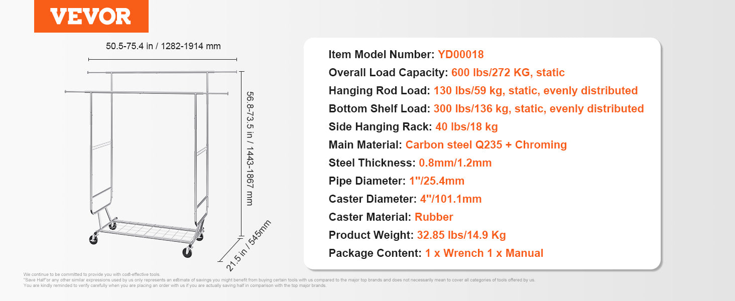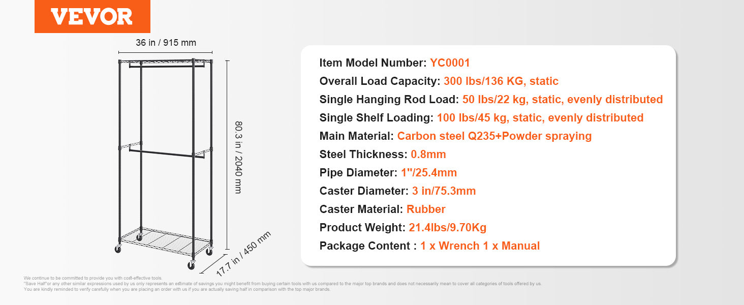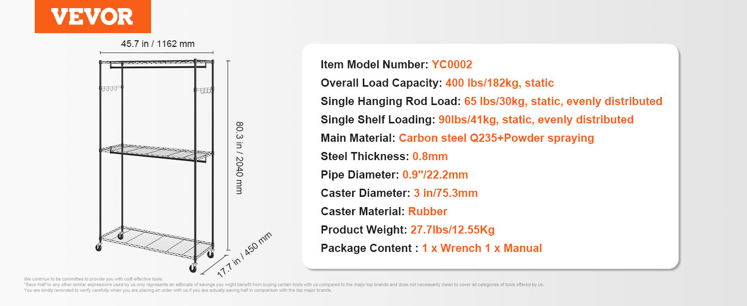Move or Fixed: VEVOR rolling garment rack comes with four casters, two of which are lockable. Whether effortlessly gliding the rack across your bedroom for outfit selection or securely parking it in place during ironing, these versatile casters ensure smooth mobility and steadfast stability, adapting to any situation.