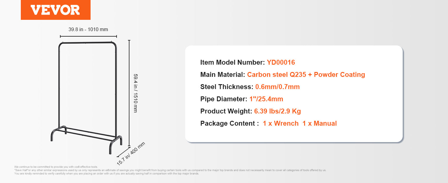 Sturdy & Durable: With a thickened steel diameter of 1 inch (25.5mm), this heavy duty garment rack can bear the weight of up to 600 lbs effortlessly. It provides secure and reliable support for your entire clothing collection, ensuring garments are held securely and well-supported.