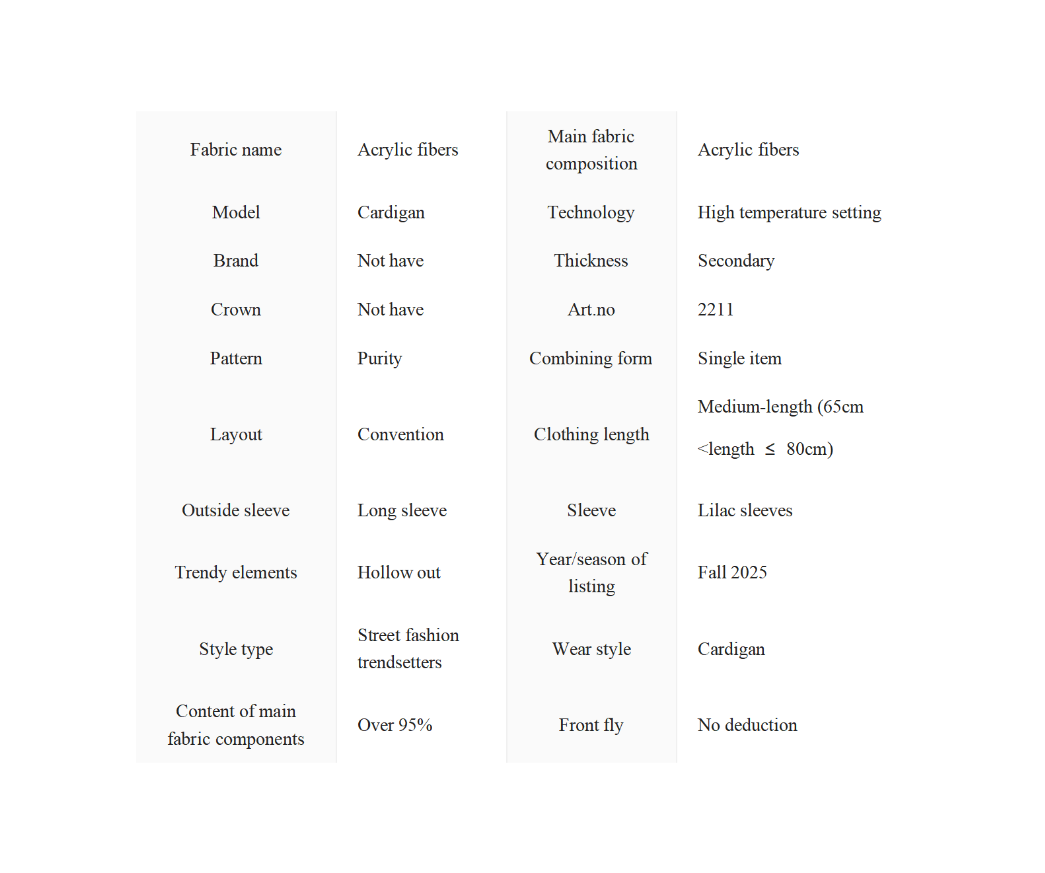 Women Casual Solid Color Hollow Out Lantern Sleeve Mid-Length Cardigan Sweater