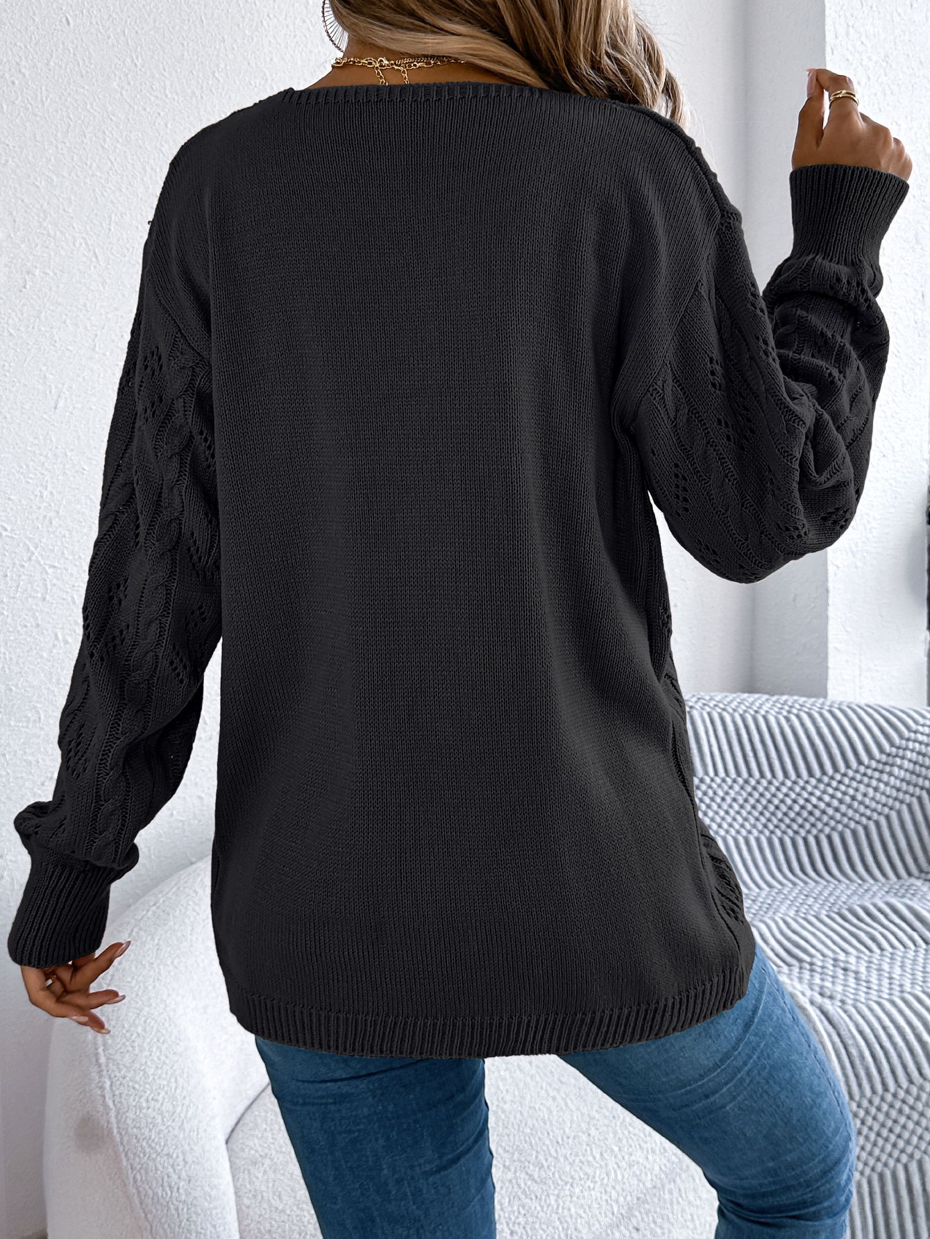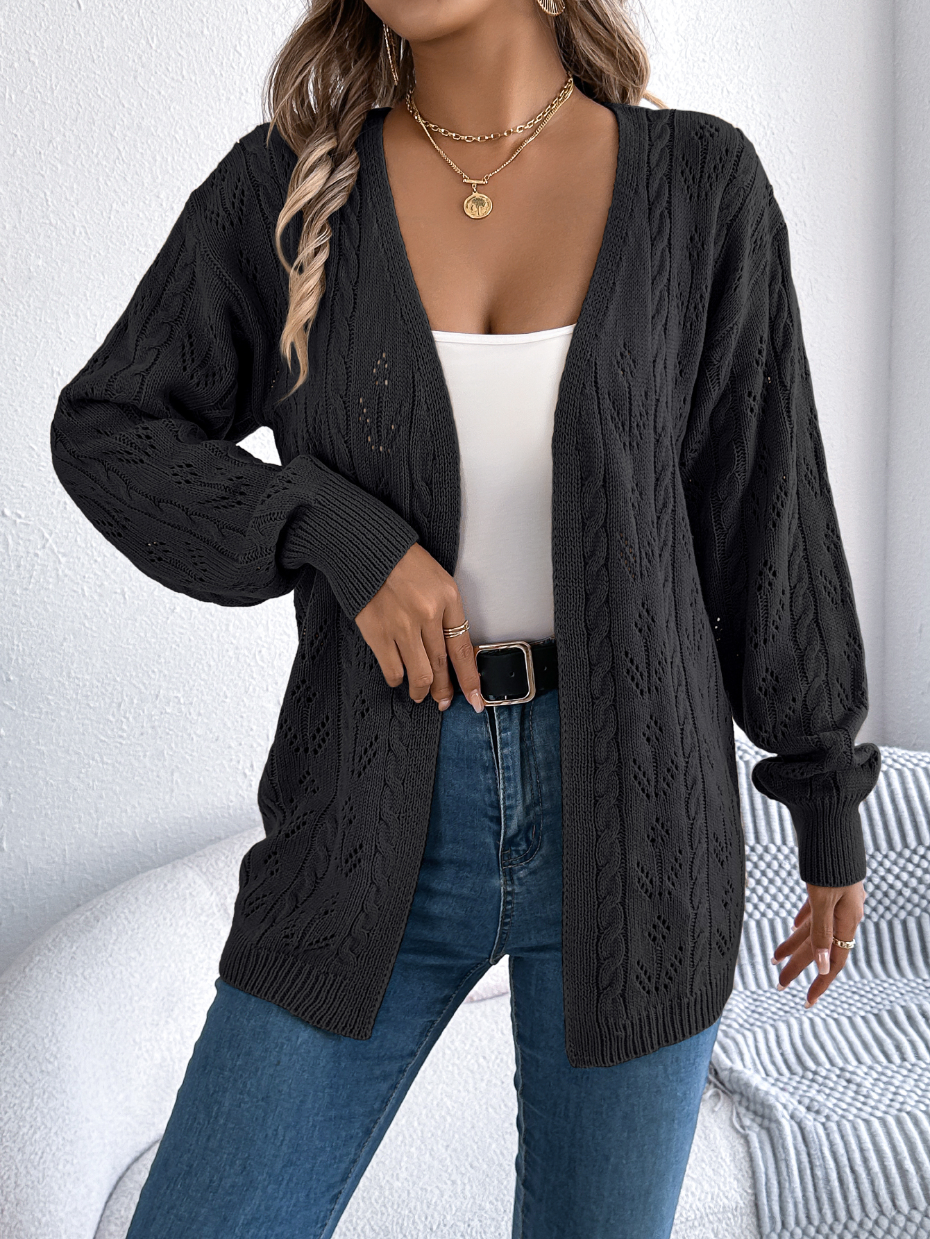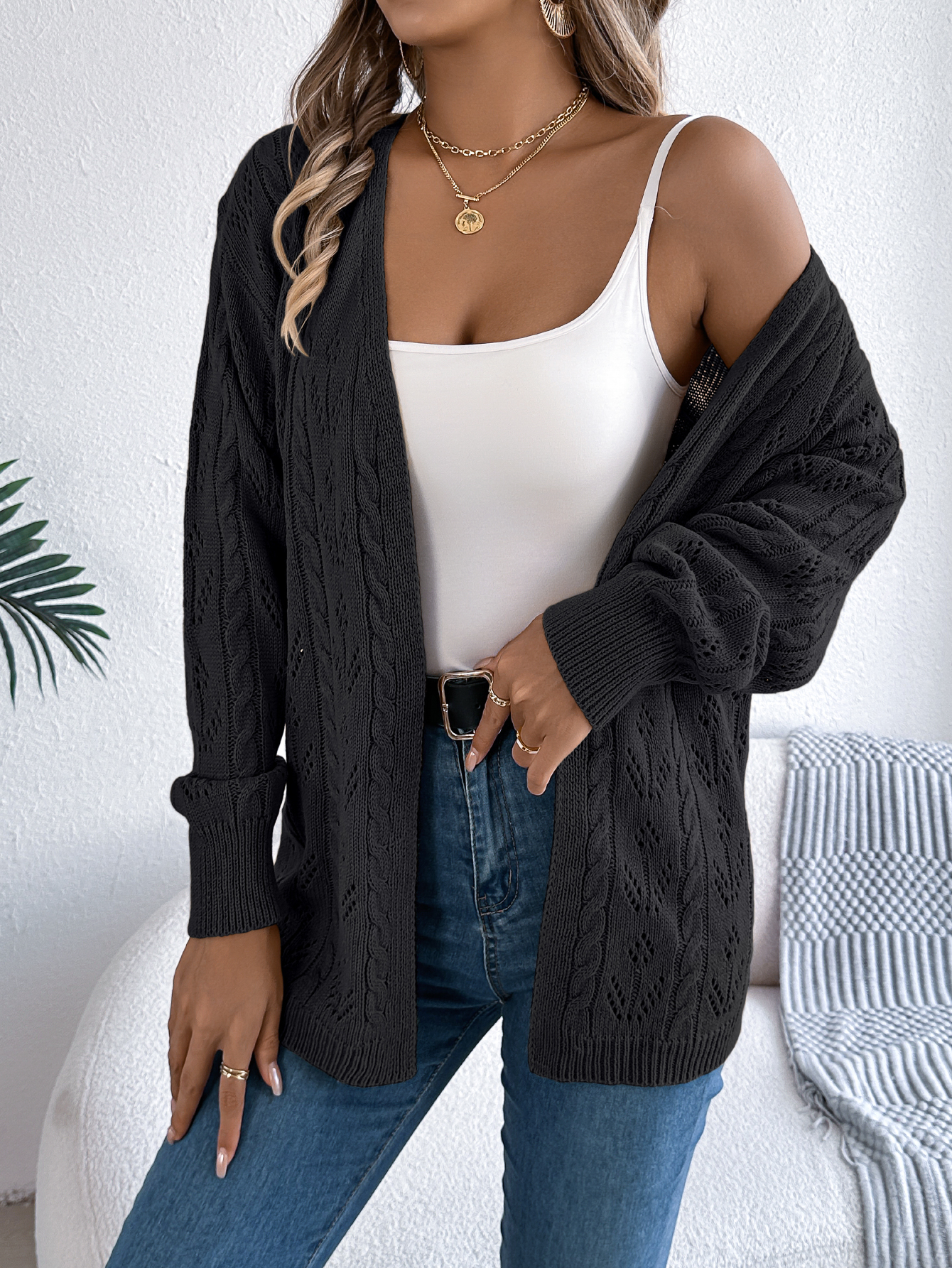 Women Casual Solid Color Hollow Out Long Sleeve Cardigan Sweater Coat