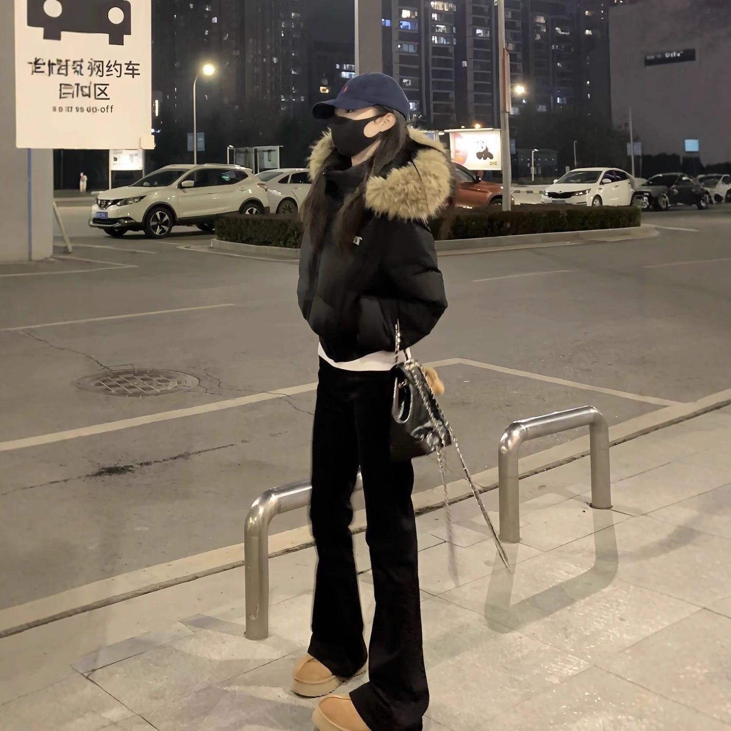 American Winter Short Faux Fur Collar Padded Coat For Women