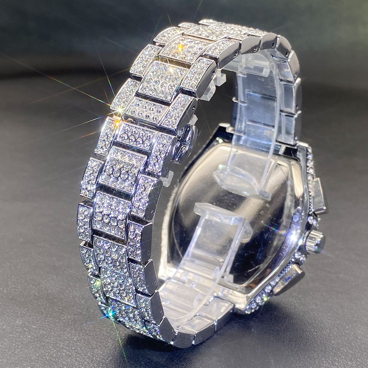 Hip Hop Men's Full Diamond Multi-function Chronograph Luminous Tonneau Quartz Watch
