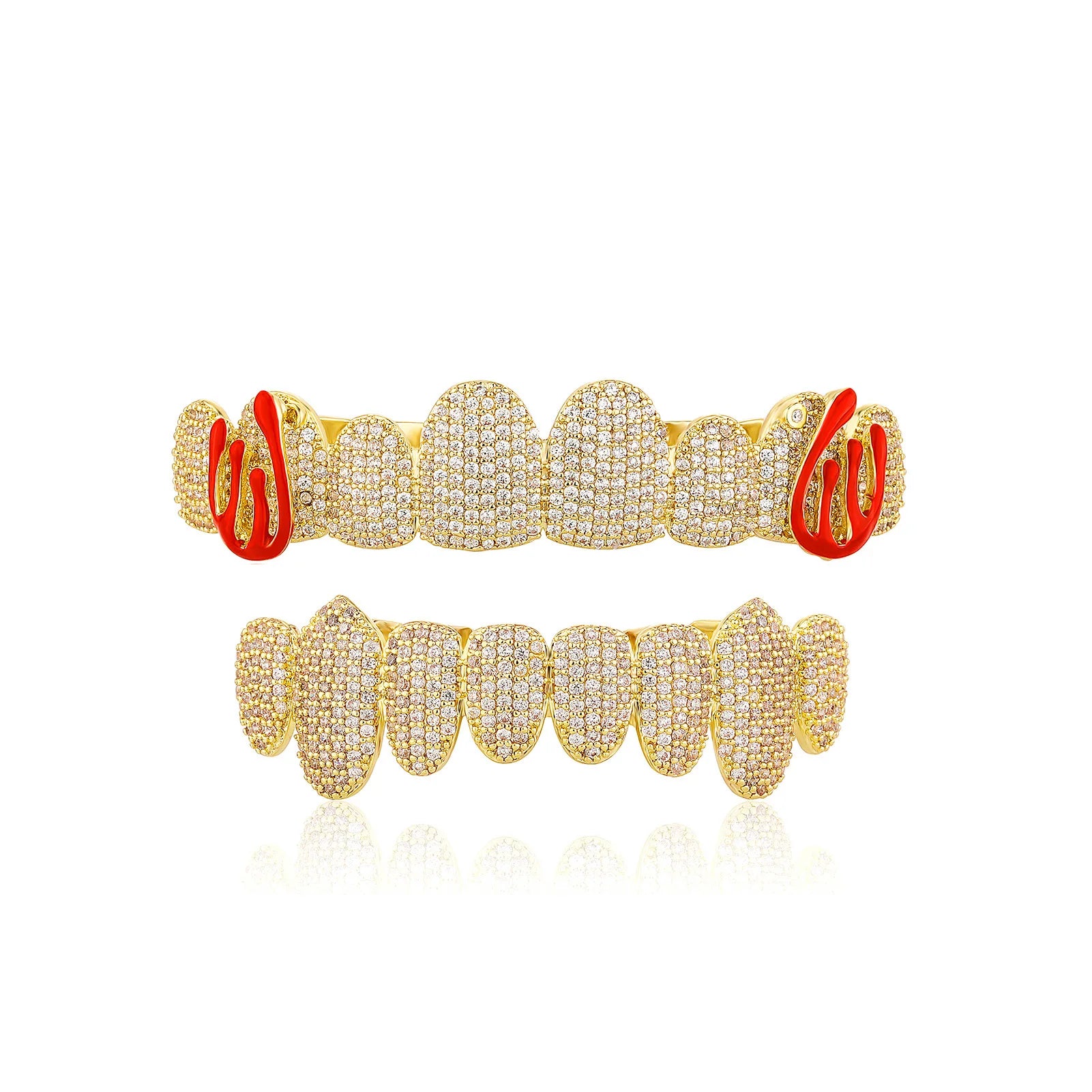 Hiphop Full Diamond Grillz Braces 8 Teeth Colorful Enamel Inlaid Diamond Online Shopping Seller Special Supply