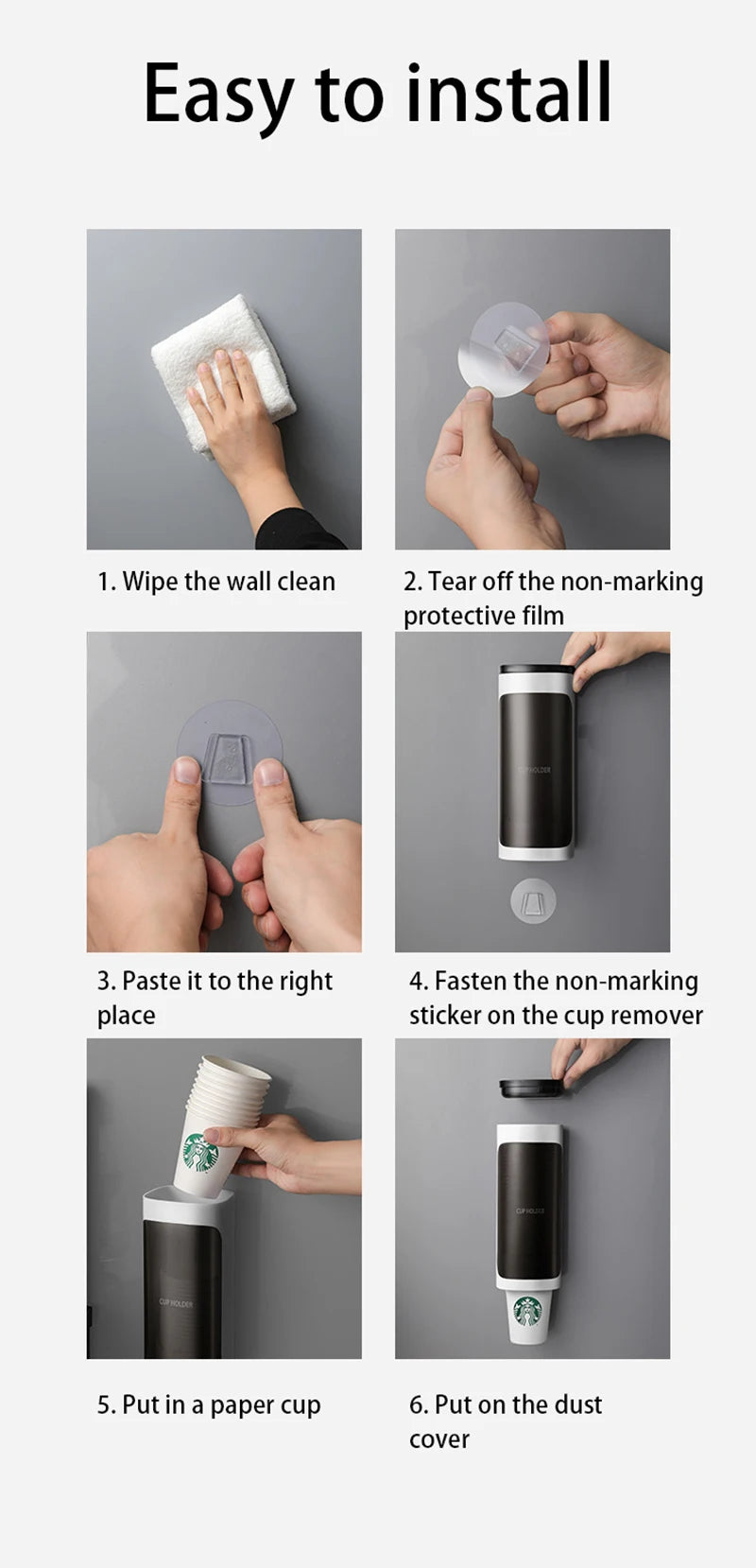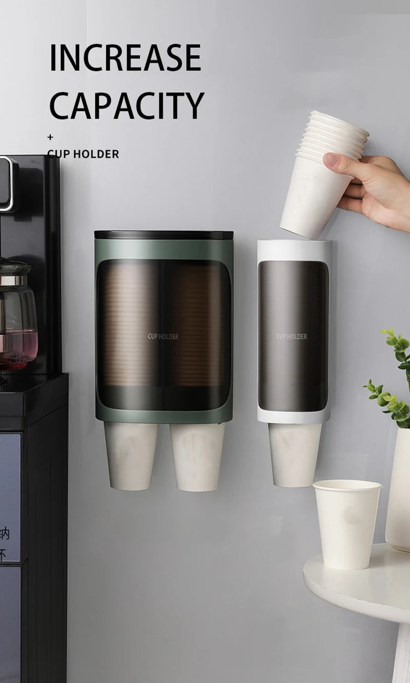 An der Wand montierte, automatisch herunterklappbare Einweg-Becherhalter für den Haushalt, stanzfreie Pappbecher, staubdichte Trinkbrunnengestelle