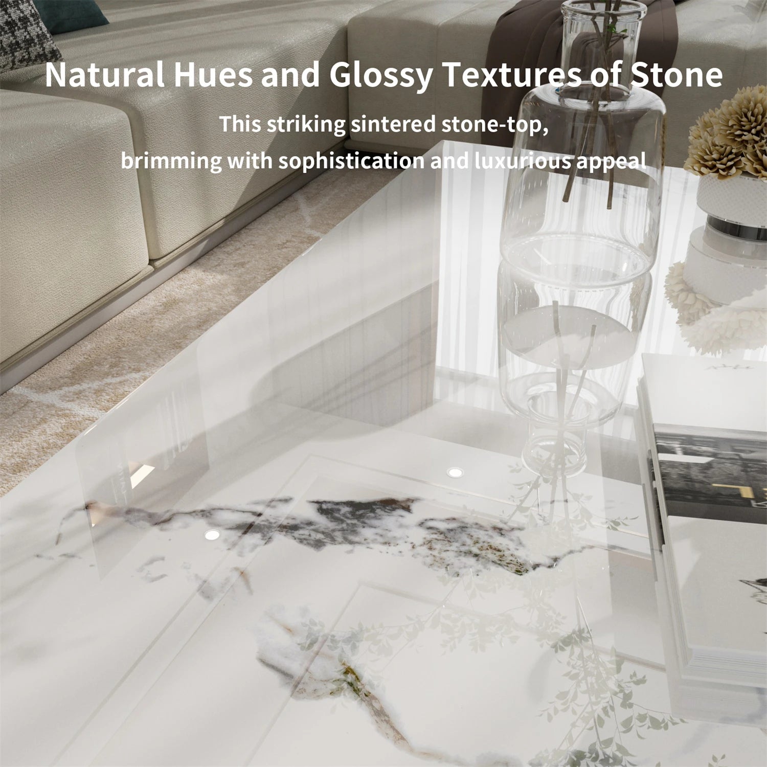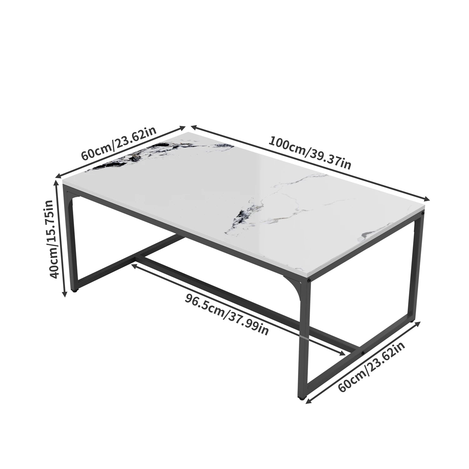 Rechteckiger Couchtisch mit Tuschemalerei-Textur, moderner Chic, Beistelltisch neben dem Sofa, Tischplatte aus Sinterstein, Aluminiumgestell