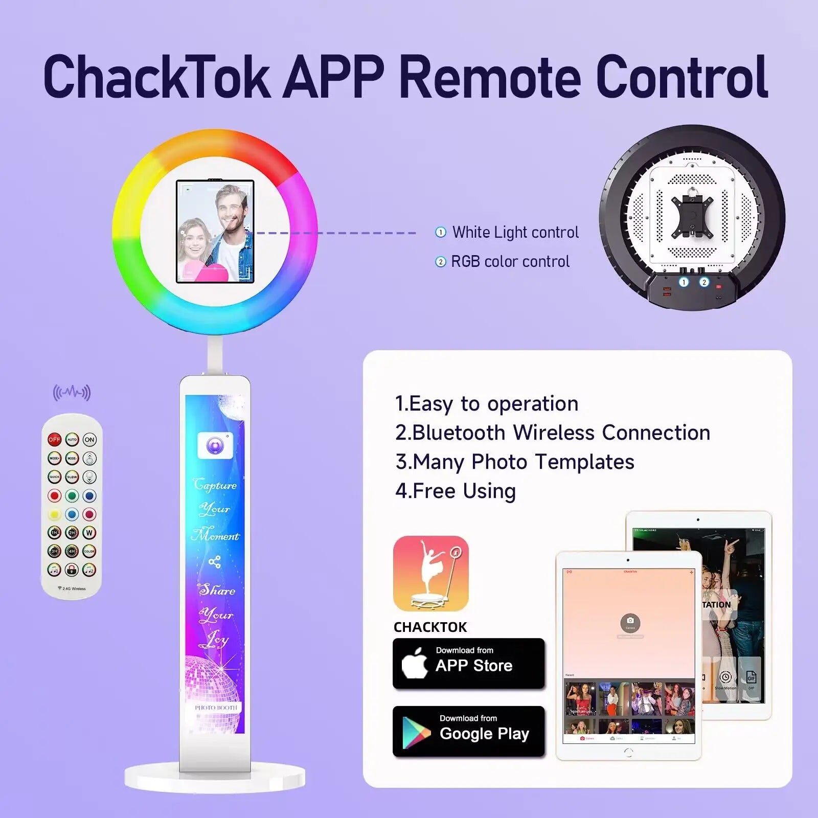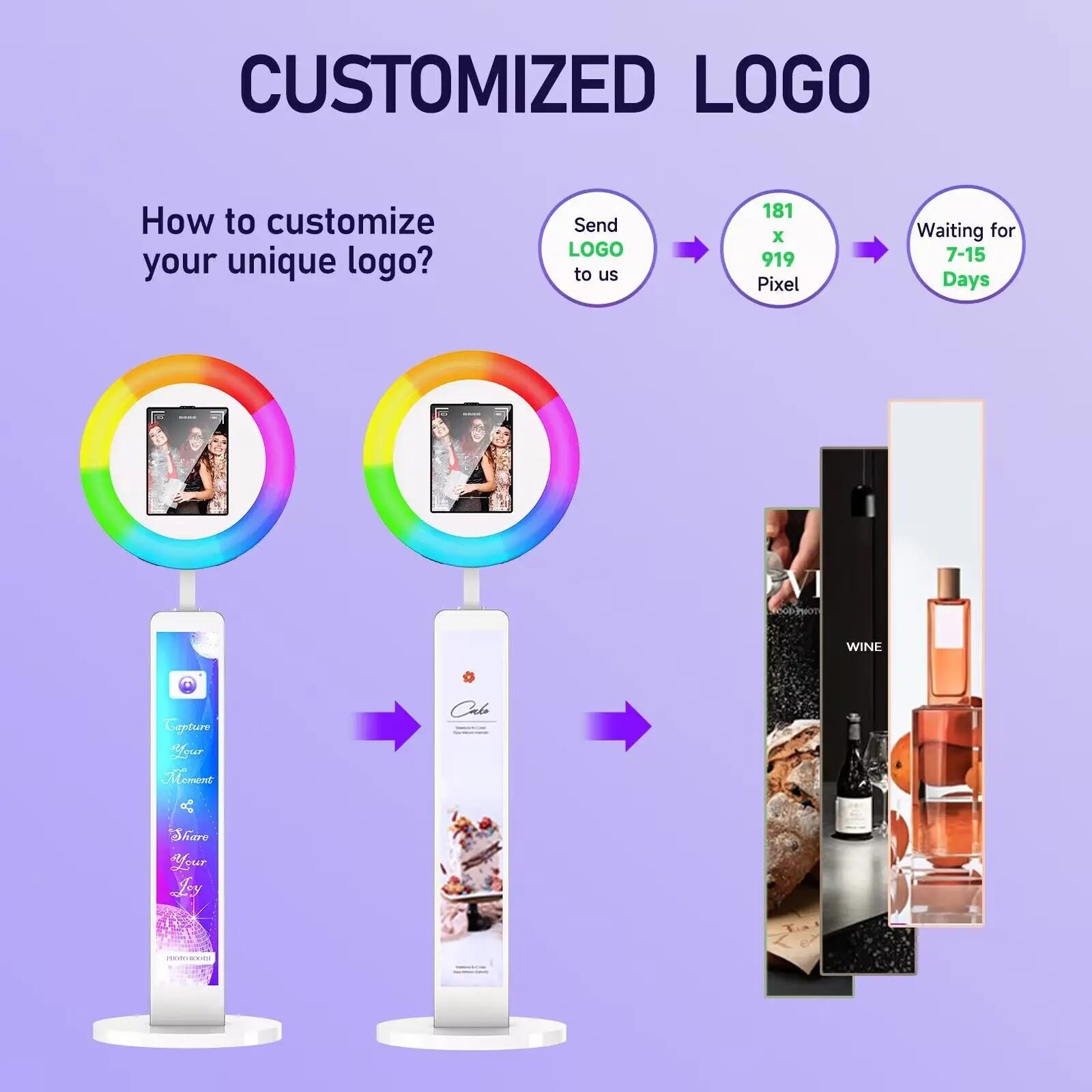iPad Photo Booth Selfie-Maschine Shell Verstellbarer Ständer Photobooth mit LED-Ringlicht Individuelles LOGO für Hochzeitspartys und Events