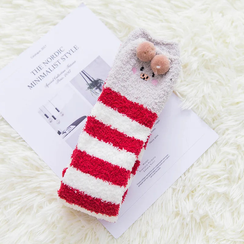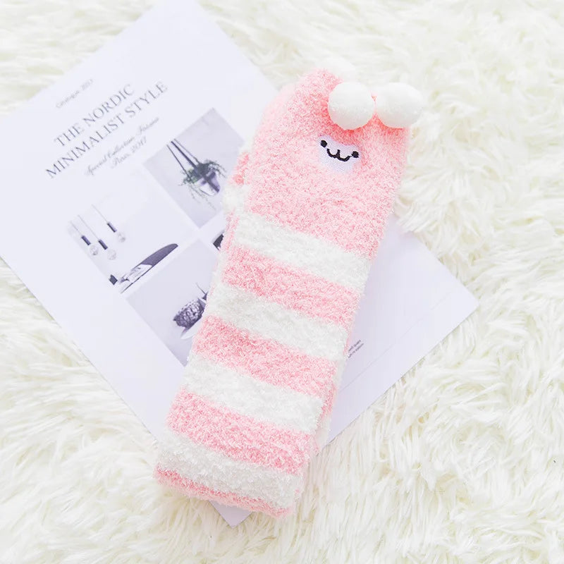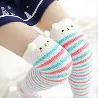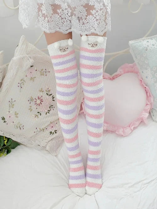 Japanische Mori-Mädchen-Tier-Kniestrümpfe, gestreift, niedlich, Kompression, Herbst/Winter, warm, kuschelig, lange Oberschenkelstrümpfe