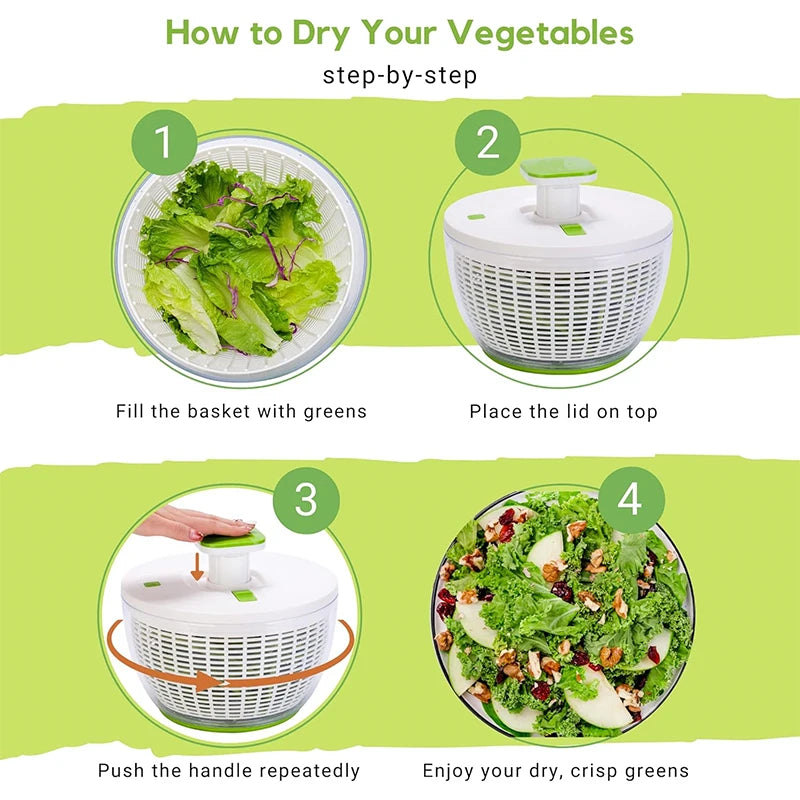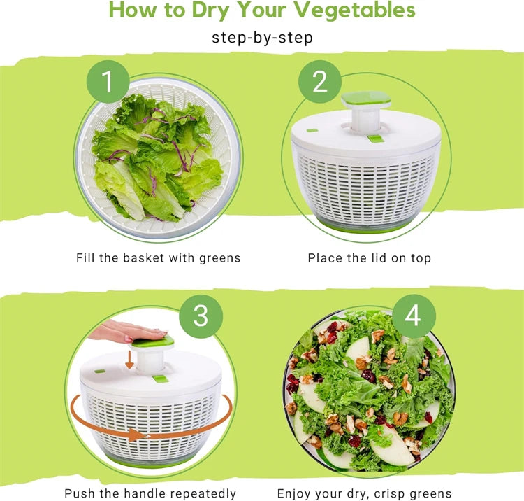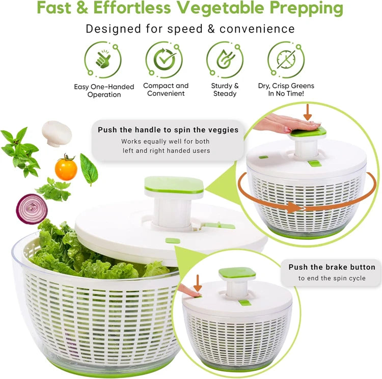 LMETJMA QuickPush Salatschleuder Groß 6,3 QT Gemüsewaschmaschine, Trockner, Sieb und Abtropfvorrichtung mit Abtropfschale und Sieb JT400