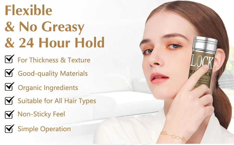 LOCKMIO Wachsstift, natürliches Kokosnussöl, spendet Feuchtigkeit, macht weich und glättet, frisiert, beugt abstehende Haare vor und kontrolliert die Haarkanten, starker Halt, langanhaltend
