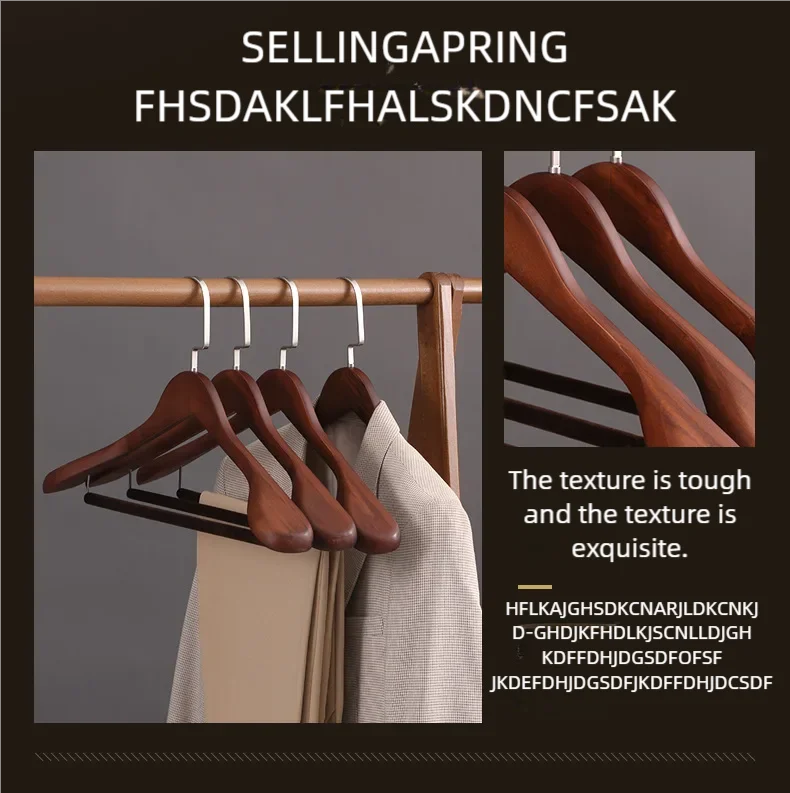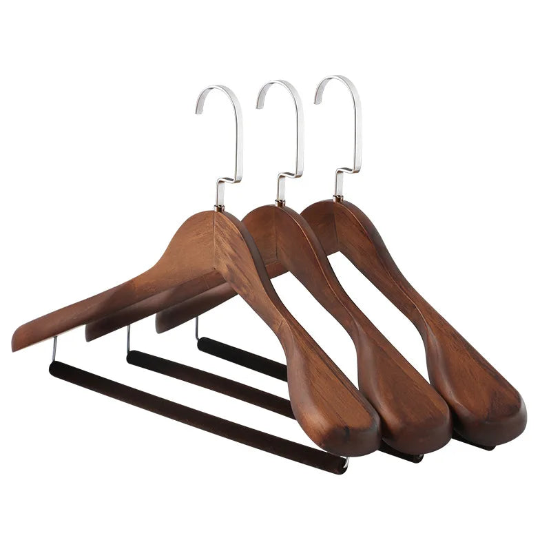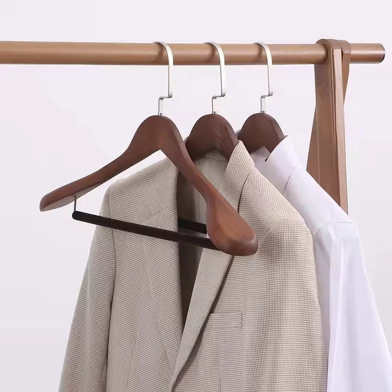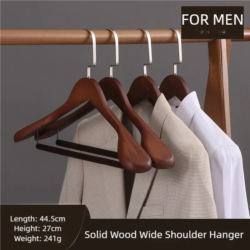 Luxuriöse Kleiderbügel aus Holz für Anzüge, Mäntel, Jacken, Oberbekleidung und Hemden mit breiten Schultern, 360° drehbaren Haken und rutschfester Stange