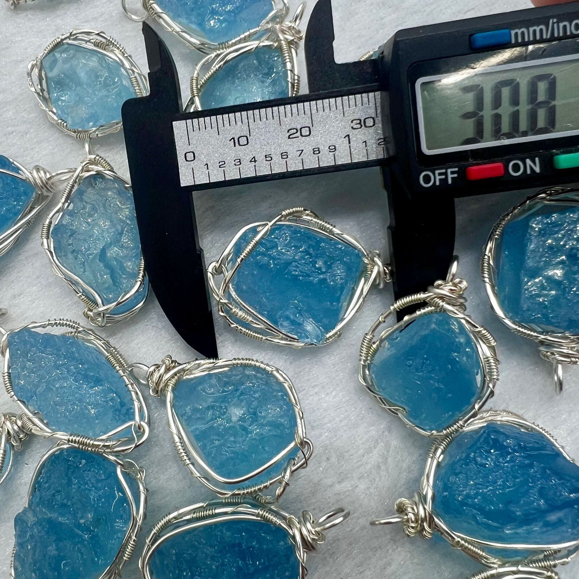 Natural Aquamarine Raw Stone Handmade Copper Wire Crystal Pendant