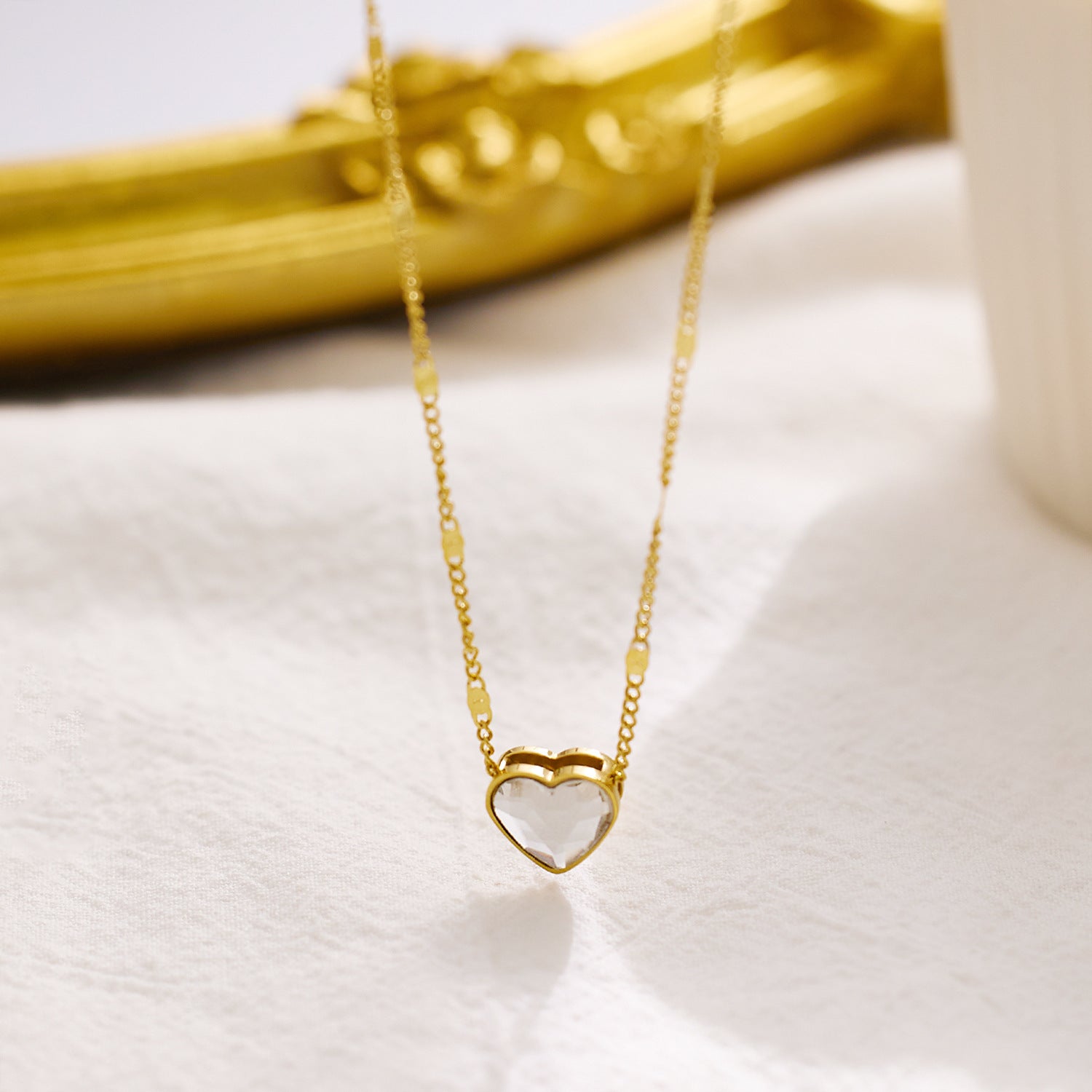 Stainless Steel Necklace With Diamonds Loving Heart Zircon Women