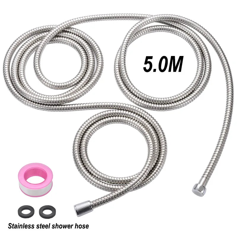 Edelstahl-Brauseschlauch, 5 m lang, für Badezimmer, Dusche, Wasserschlauch, Verlängerung, Sanitärrohr, Zugrohr, Badezimmer-Zubehör