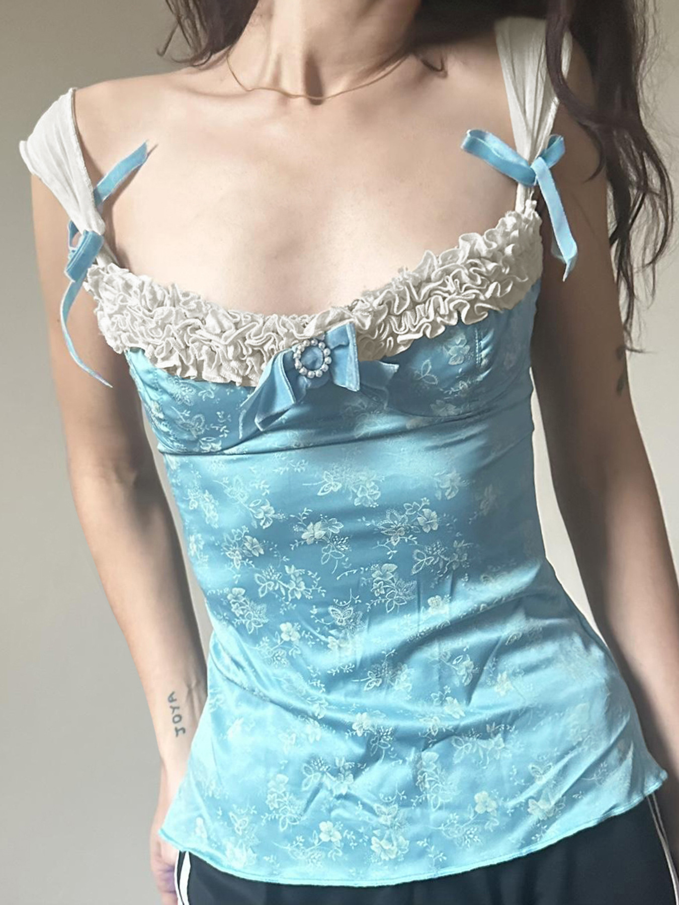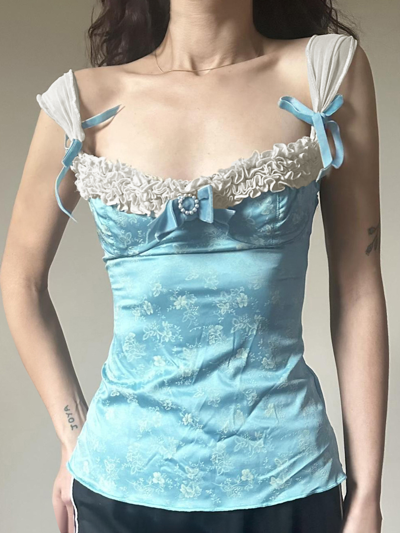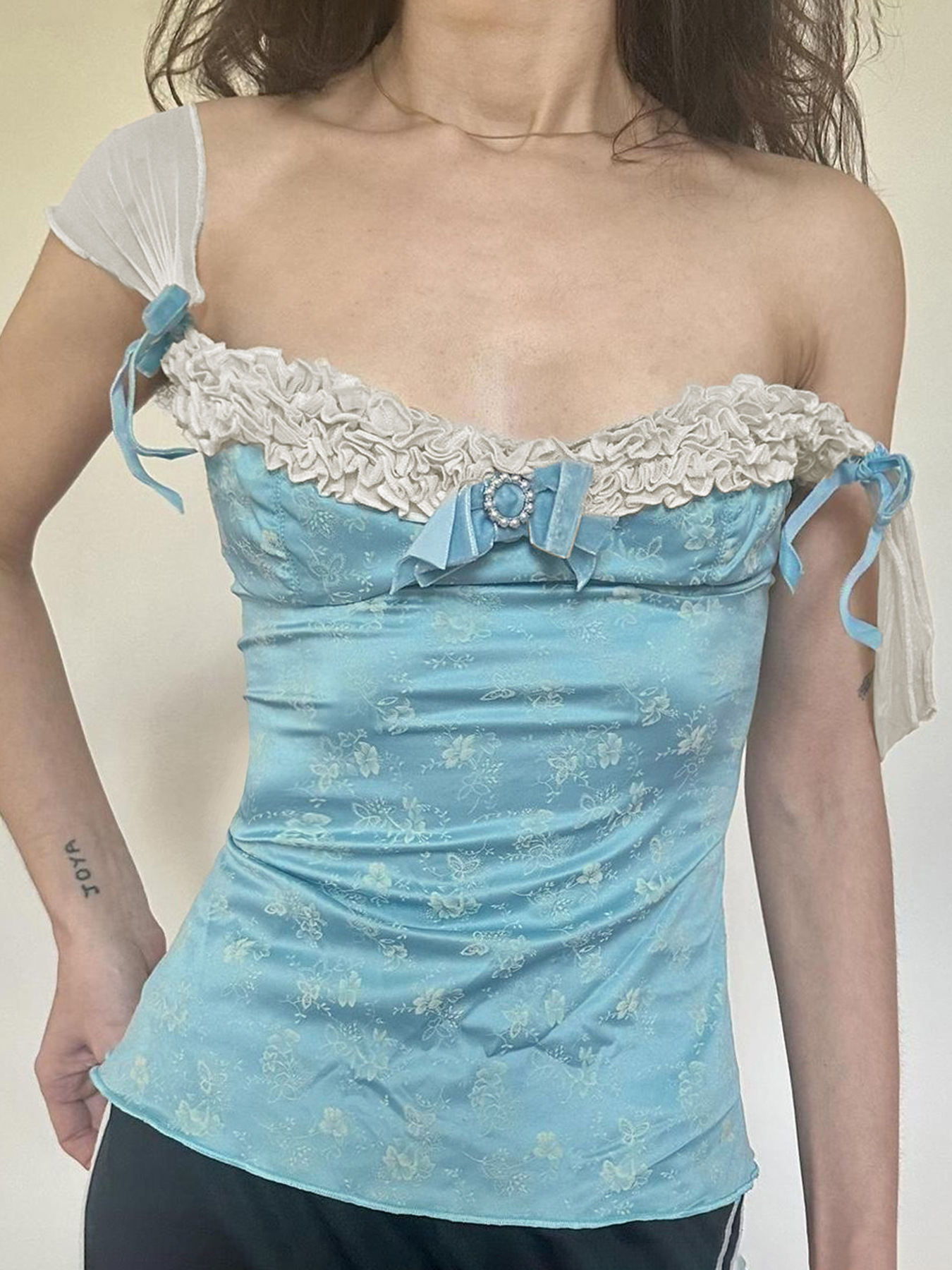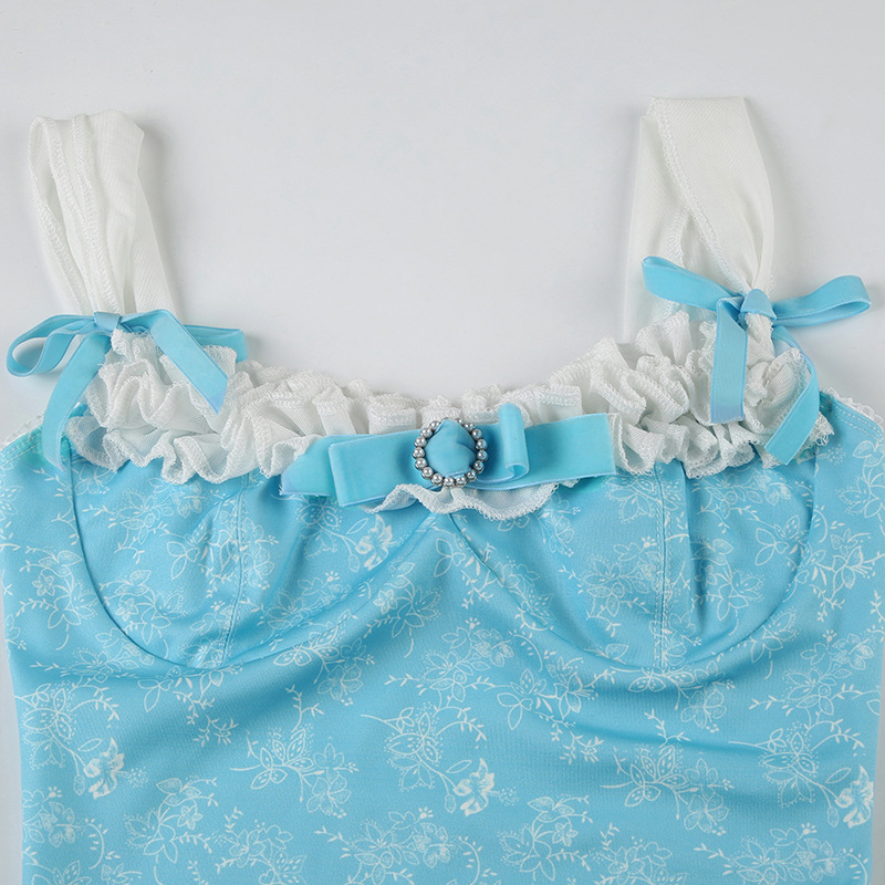 Trendy elements: Bow, lace-up, lace, cinched waist