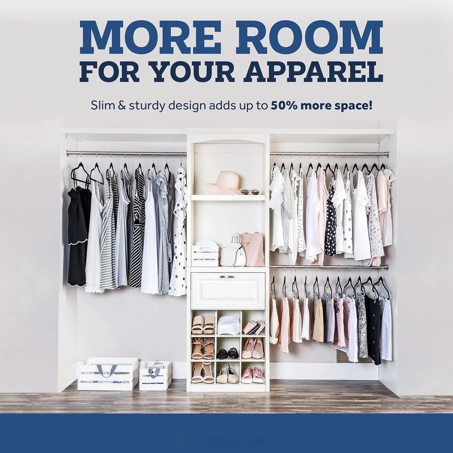 Non-Slip Suit Hanger, Velvet Prevents Movement and Slippage, Slim and Durable, Maximizes Wardrobe Space, Black/Gray - Pack of 20