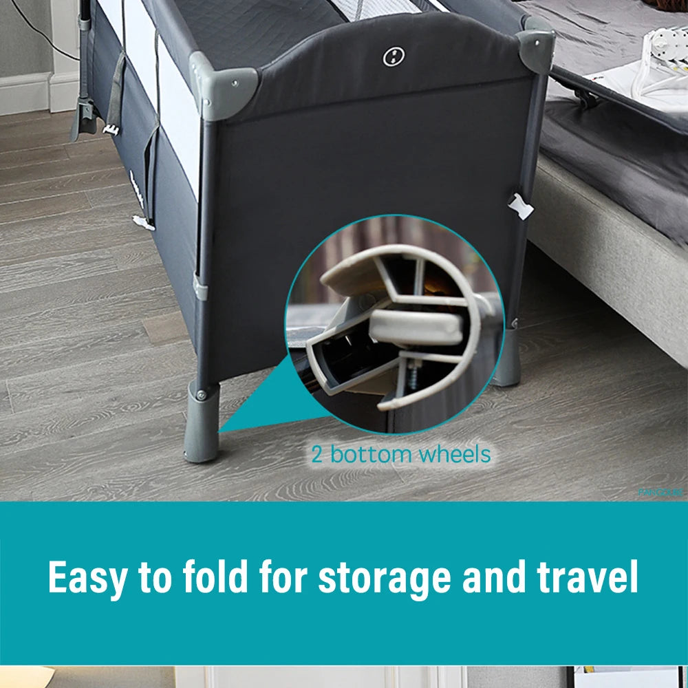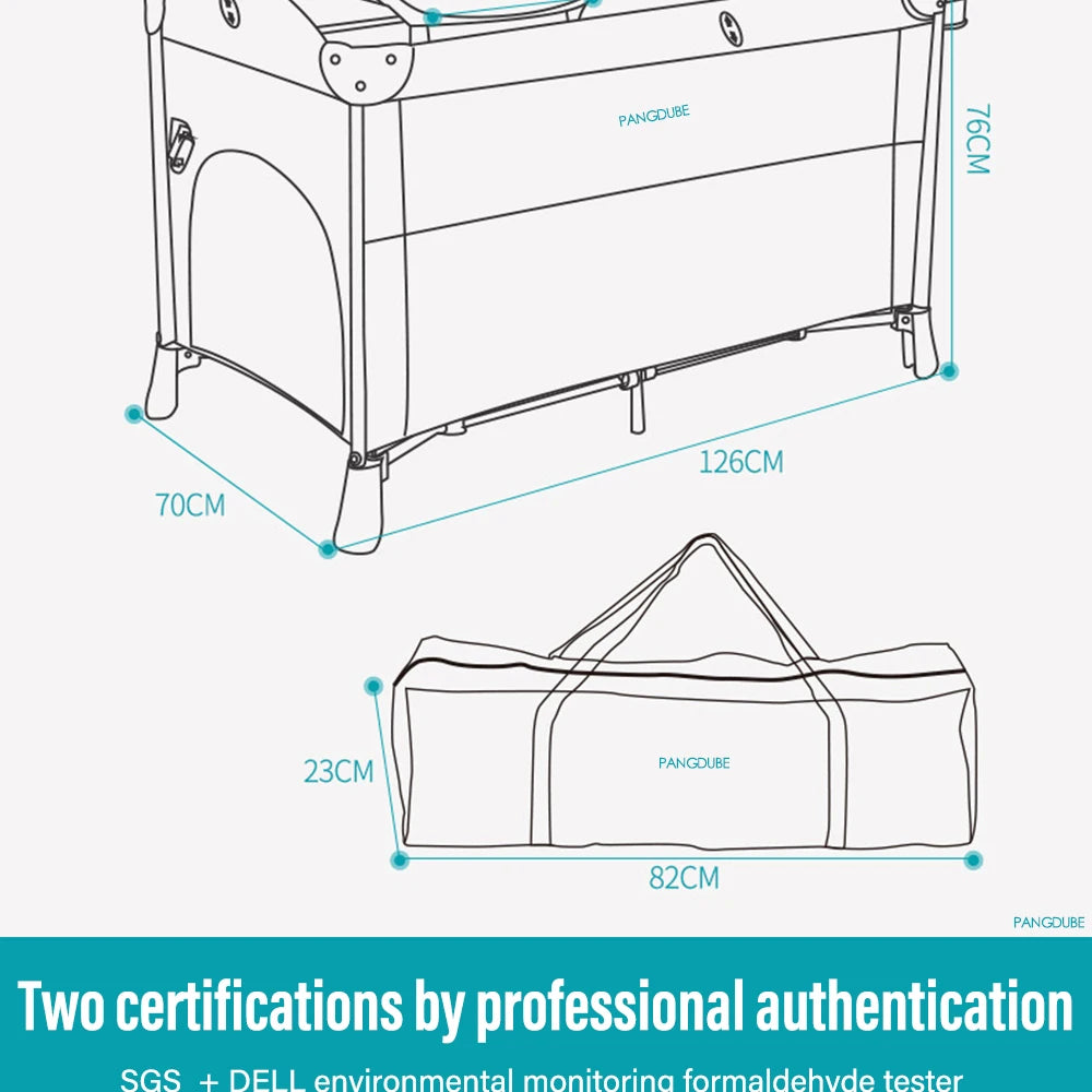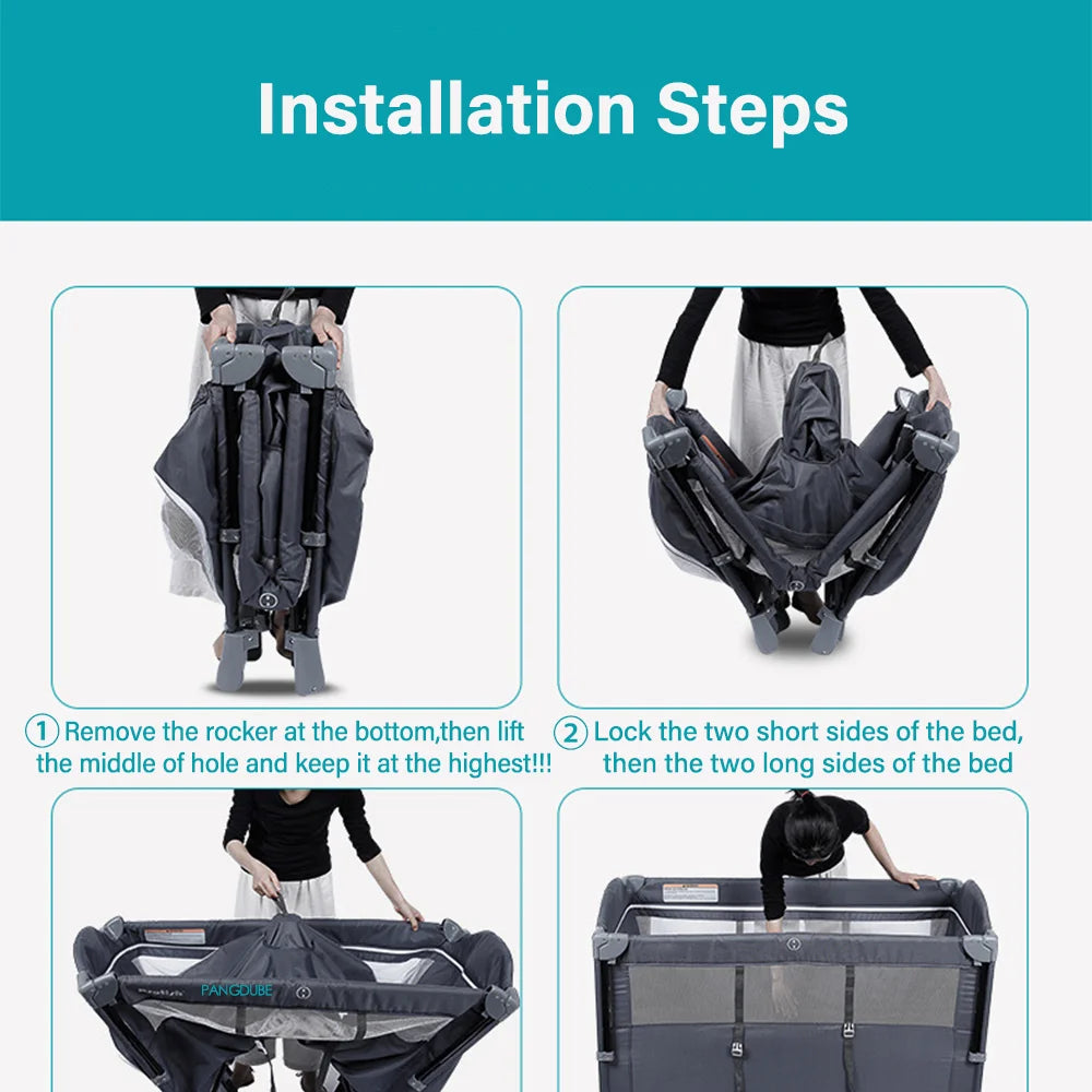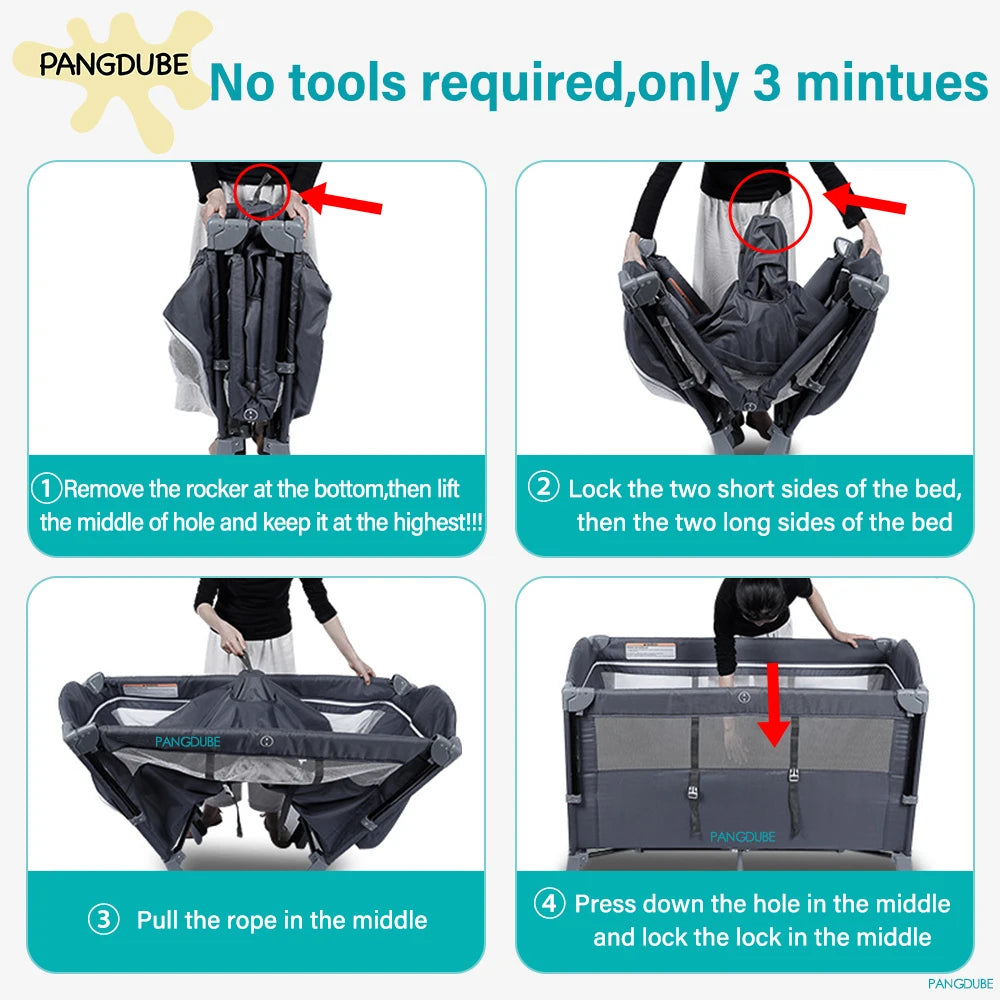 PANGDUBE 4-in-1 Baby Crib Multifunctional Convertible Bed with Rocker & Baby Playpen Newborn Changing Table Foldable Travel Cot