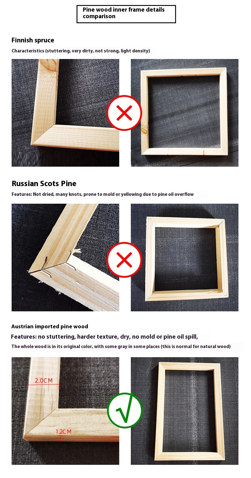 Specifications: painting core 1. Pine inner frame canvas painting core 1. Painting Core 2. Pine inner frame canvas painting Core 2