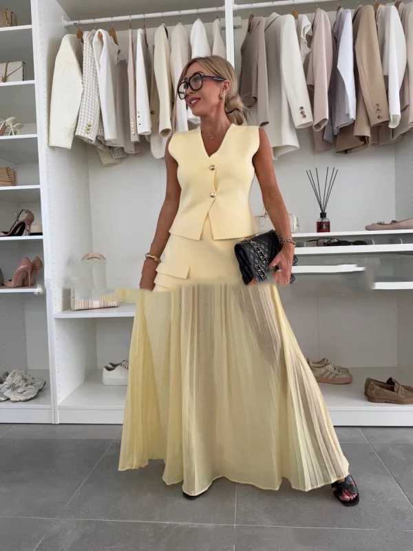 Women's Casual Solid-Colored Skirt And Pleated Long Skirt Set