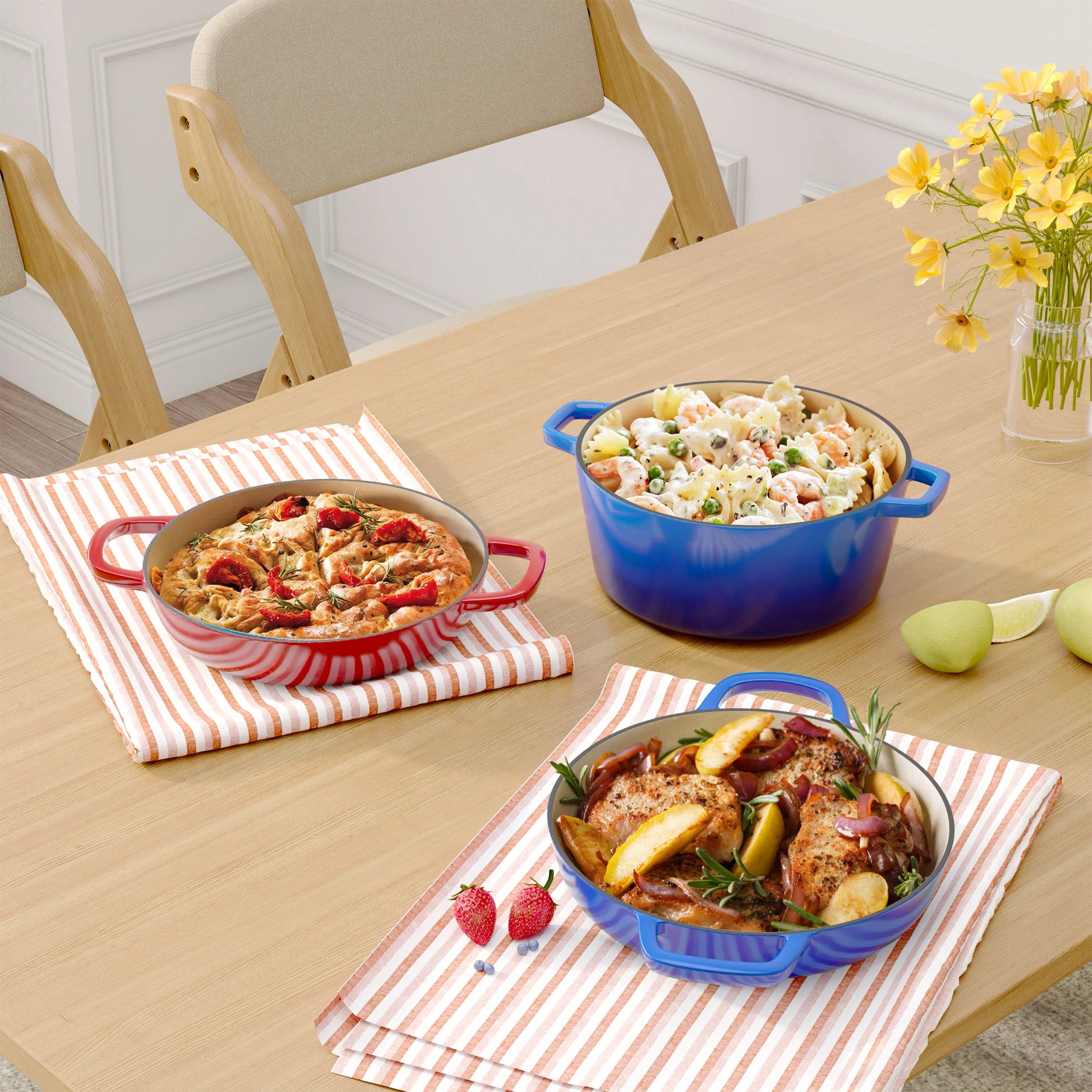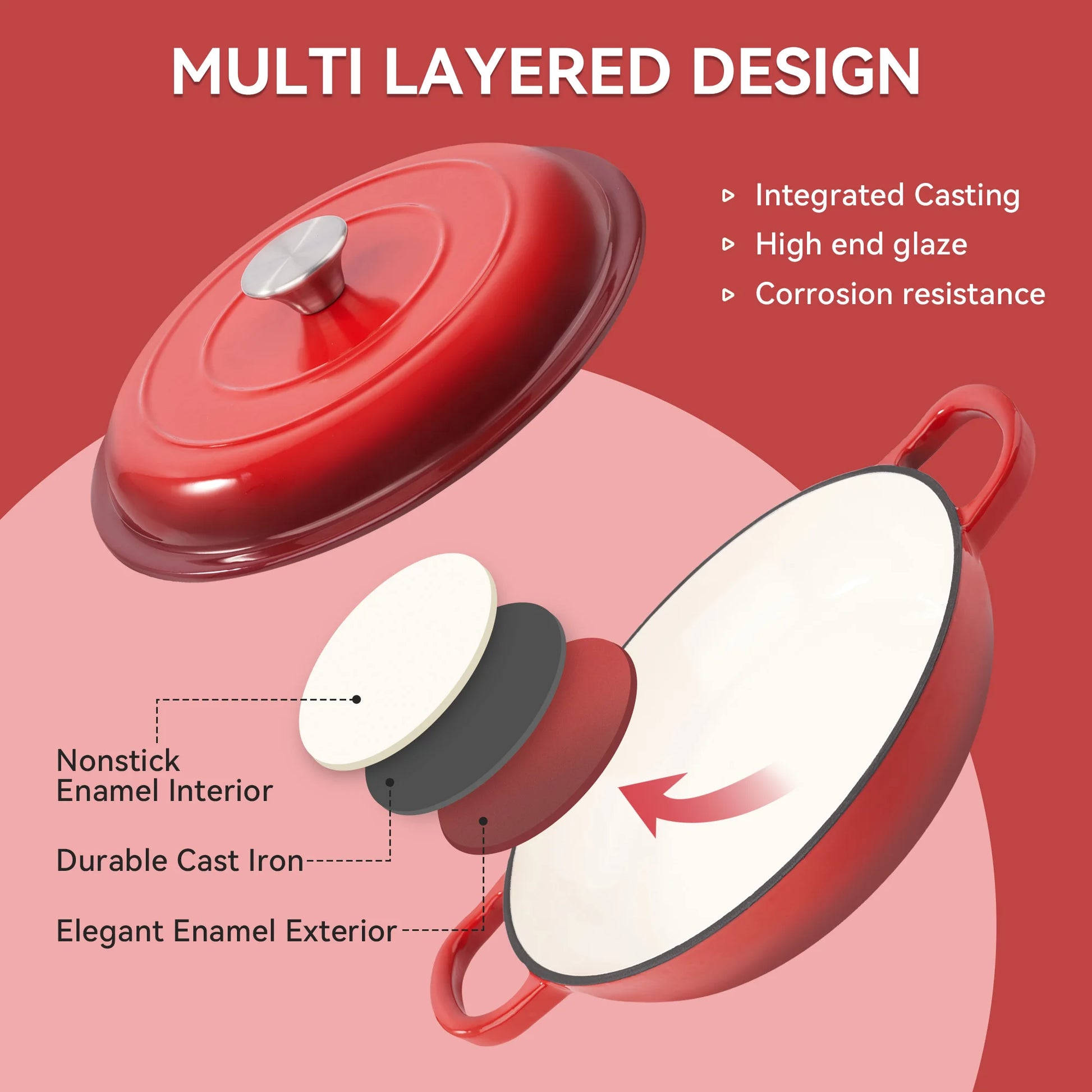 3 QT Enamel Light Cast Iron Dutch Oven, Double Handle Dutch Pot Cooking, Stew, Heavy Duty And Non-Stick, Oven Safety Up To 500°F
