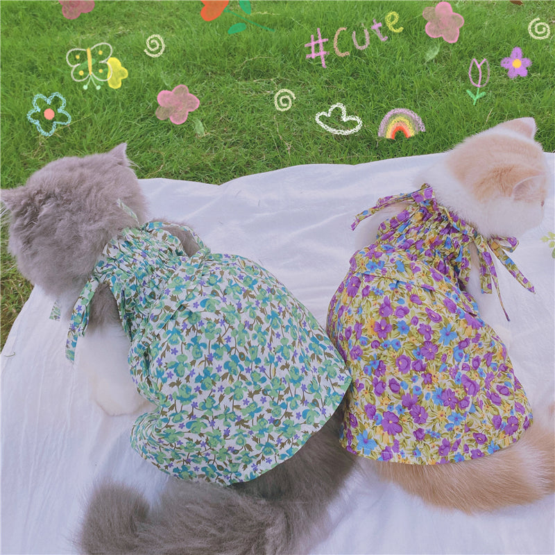 Spring Floral Lavender Pet Sling Skirt Hat Cute Sunscreen Anti-hair Thin Clothes