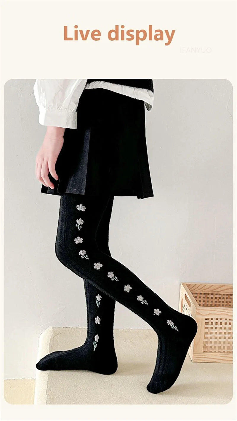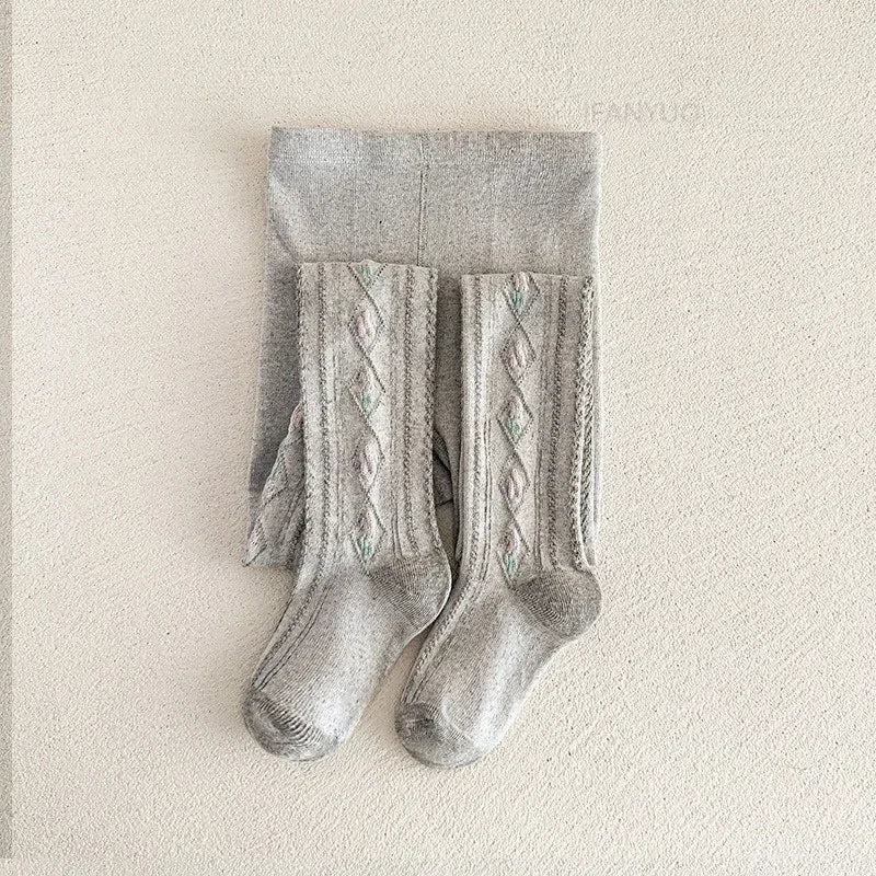 1-12Years Kids Autumn Elastic Tights Jacquard Soft Teenager Leggings Girls Knit Cotton Pantyhose Sweet Cute Baby Bottom Clothes