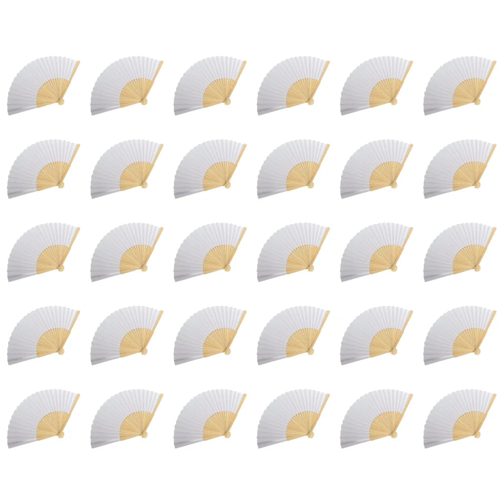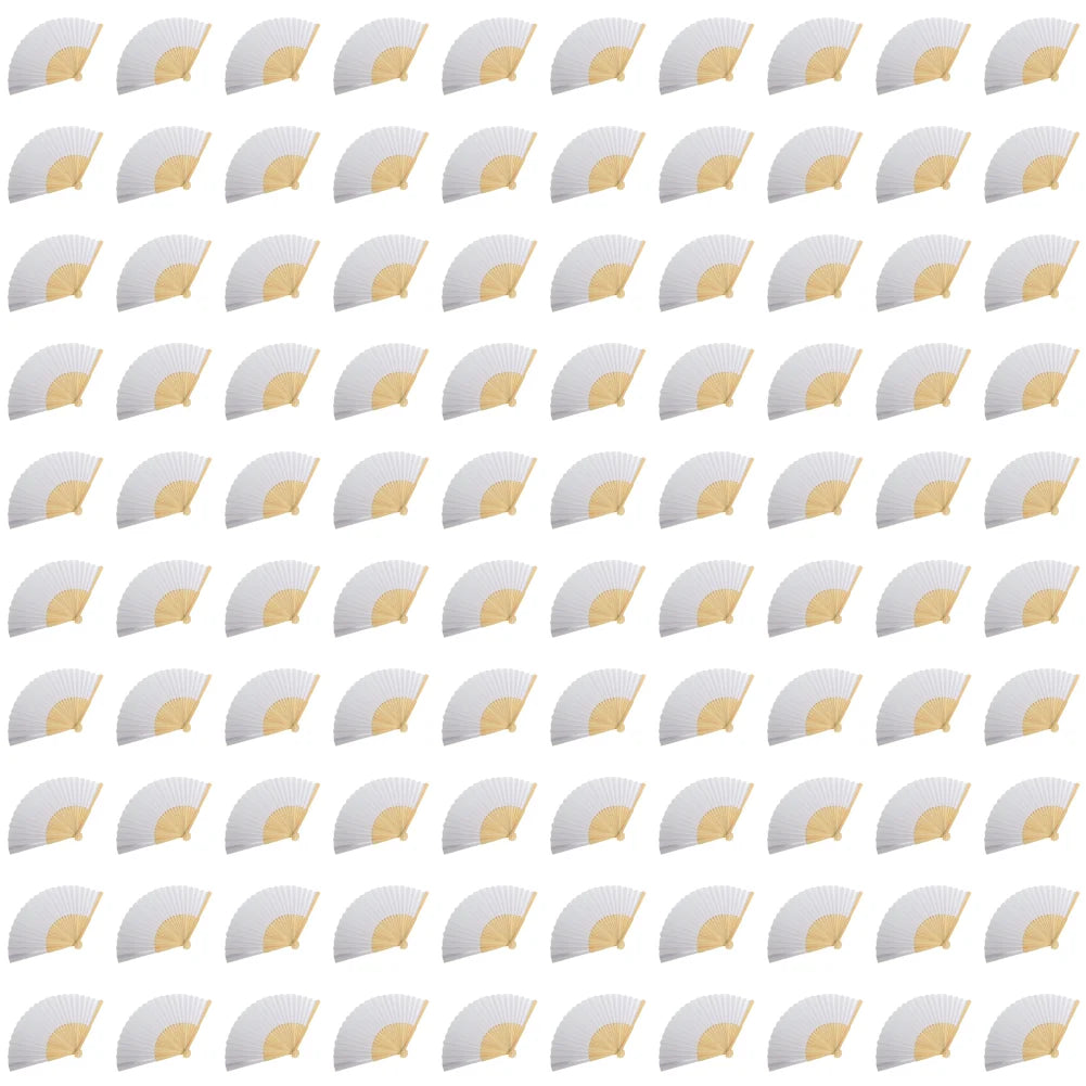 100-1PCS Hand Held Paper Fans Blank White Bamboo Folding Fans for Wedding Gift Party Dance DIY Decoration Personalised Fan