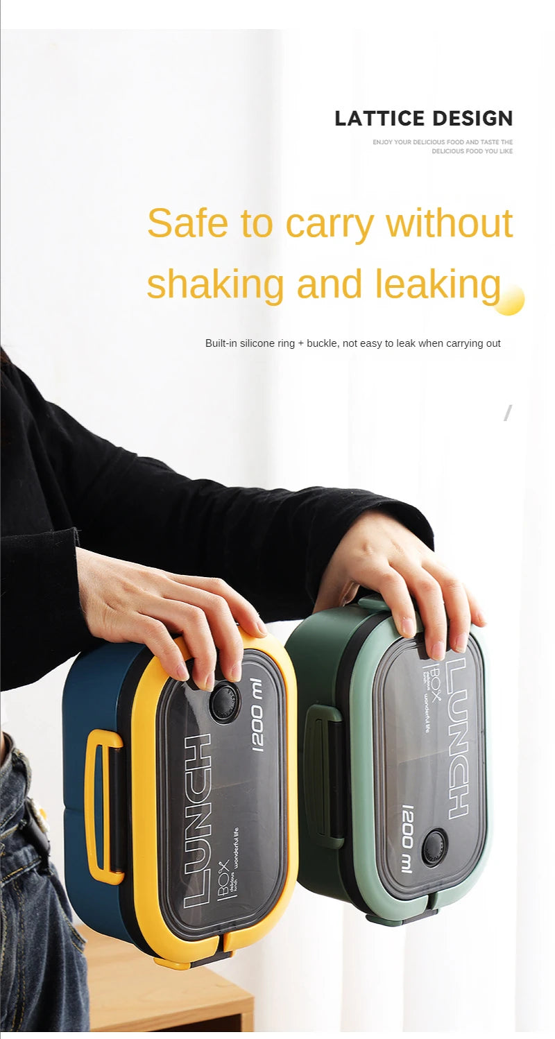 1200ML 2 Layer Bento Lunch Box With Spoon Fork, Kid High Capacity Microwae Food Containers Portable Leakproof Office Camping