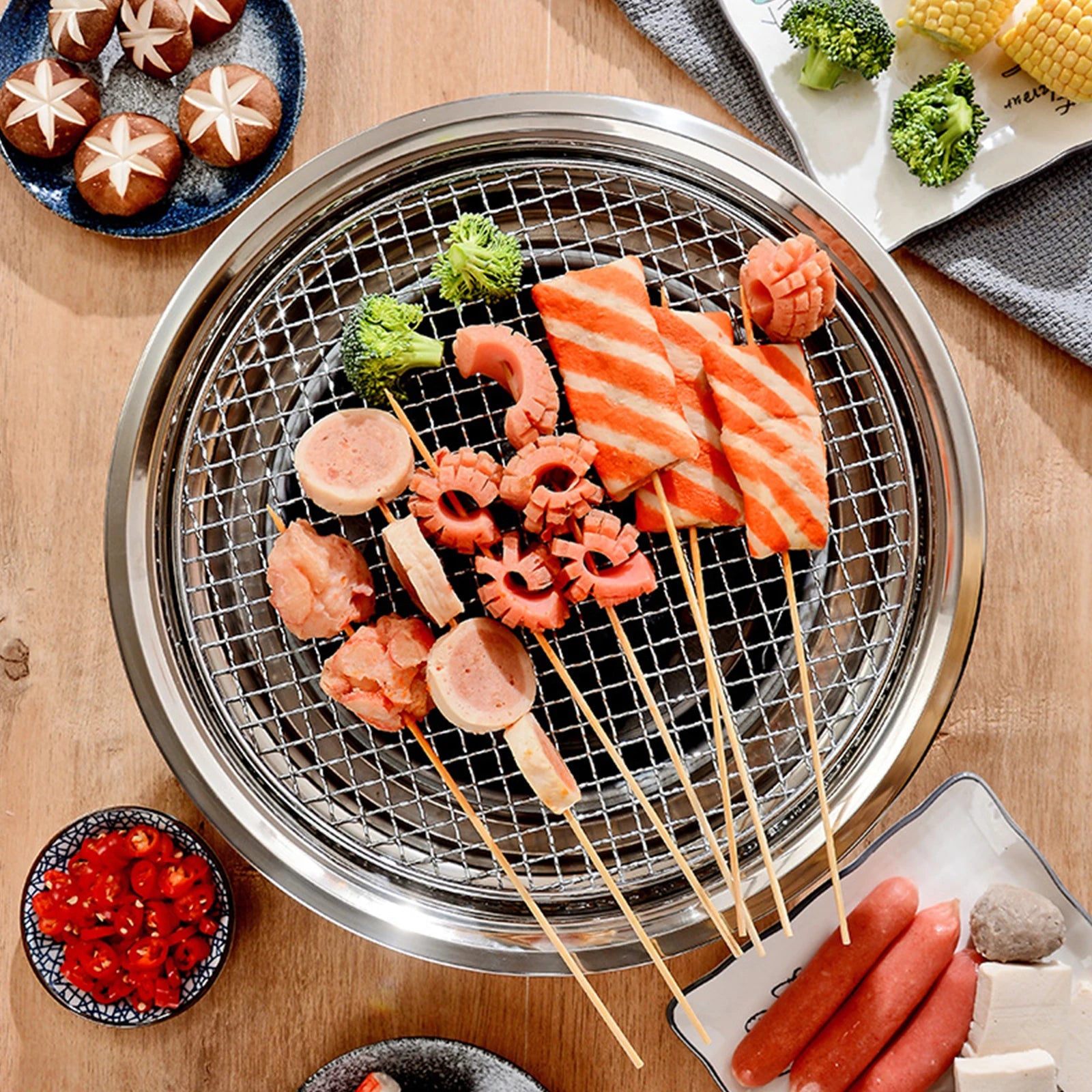 13Inch Korean BBQ Grill Multifunctional Charcoal Barbecue Grill Round Camping Grill Stove Tabletop Smoker Grill Grilled Net&Tray