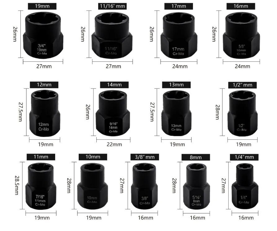 13Pc Locking Wheel Nut Remover Set Stud Bolt Impact Twist Socket Extractor Tool~