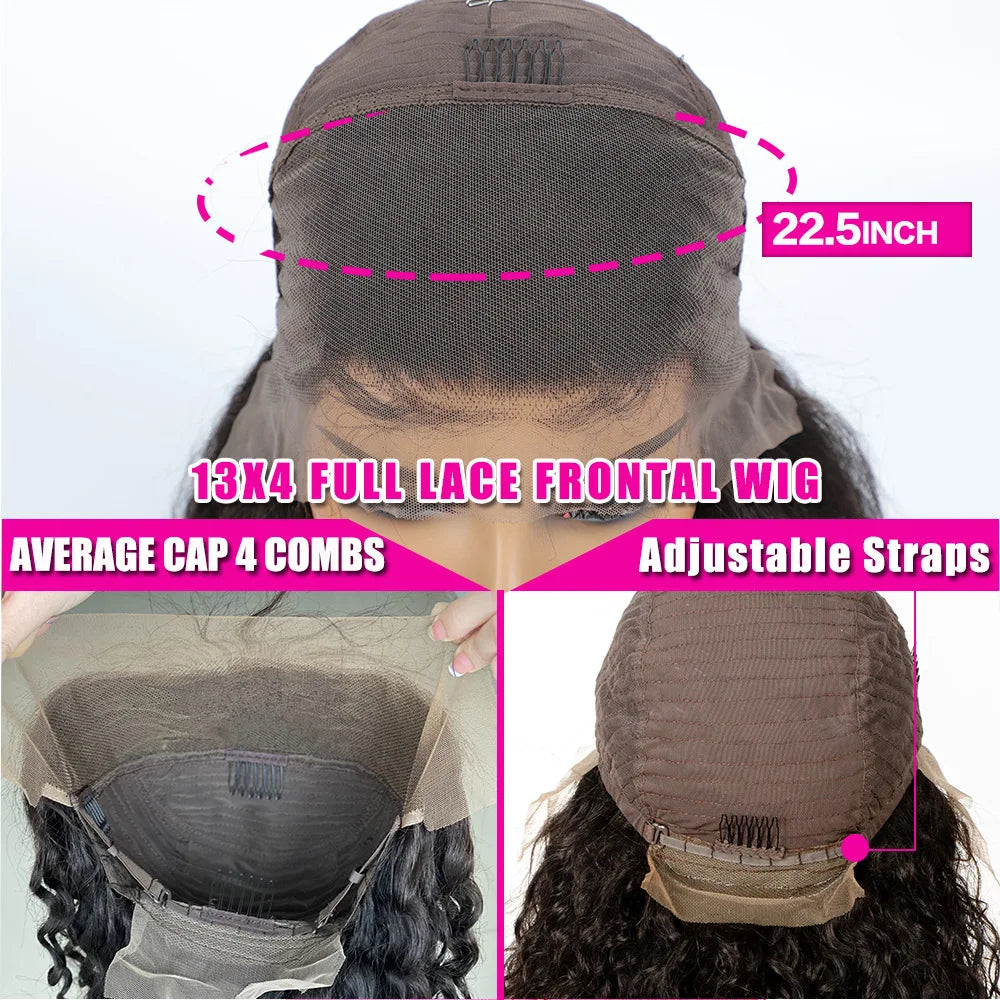 180% Density13x4 Top swiss Lace Water Wave Bob Frontal Real Human Hair Wig Lace Front Wigs Transparent Deep Kinky