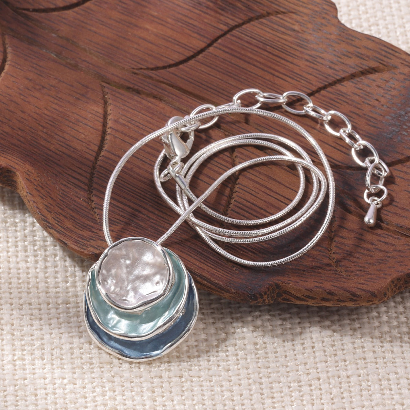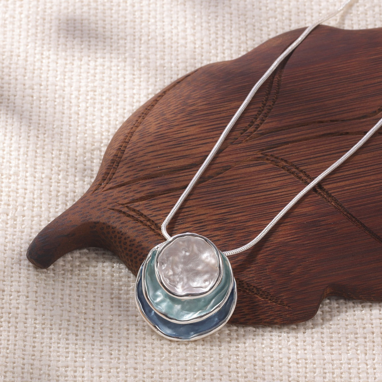 1pc Elegant Blue Enamel Pendant Necklace for Men - Zinc Alloy with Golden Accents, Twisted Rope Chain Design, Sophisticated Accessory for Formal or Casual Attire