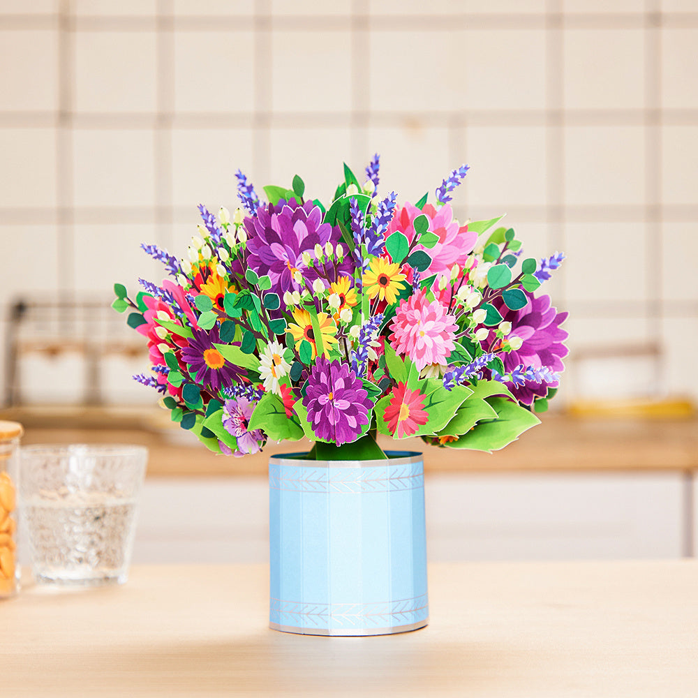 1pc Exquisite 3D Pop Up Spring Bouquet Greeting Card - Handmade Paper Carved Cartoon Card for Birthday, Spring Wedding, Anniversary, Get Well, Sympathy - Unique Party Favors, Decorative Gift Supplies with Delicate Floral Desi