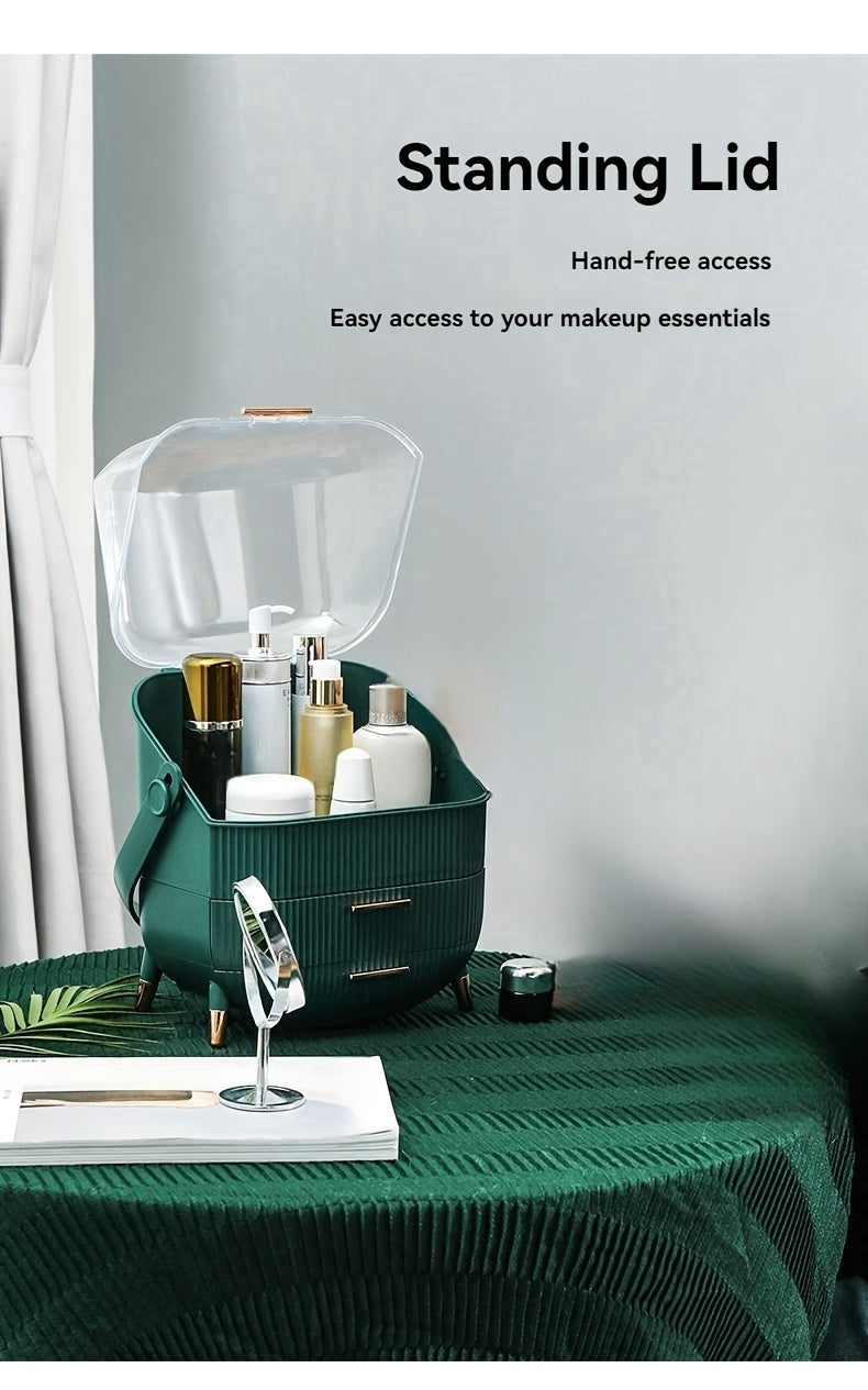 1pc Plastic Cosmetic Storage Box, Lightweight, Tension Mount, Multi-functional with Cover & Drawer, Waterproof & Dust-proof, for Bathroom & Desktop Makeup Organizer