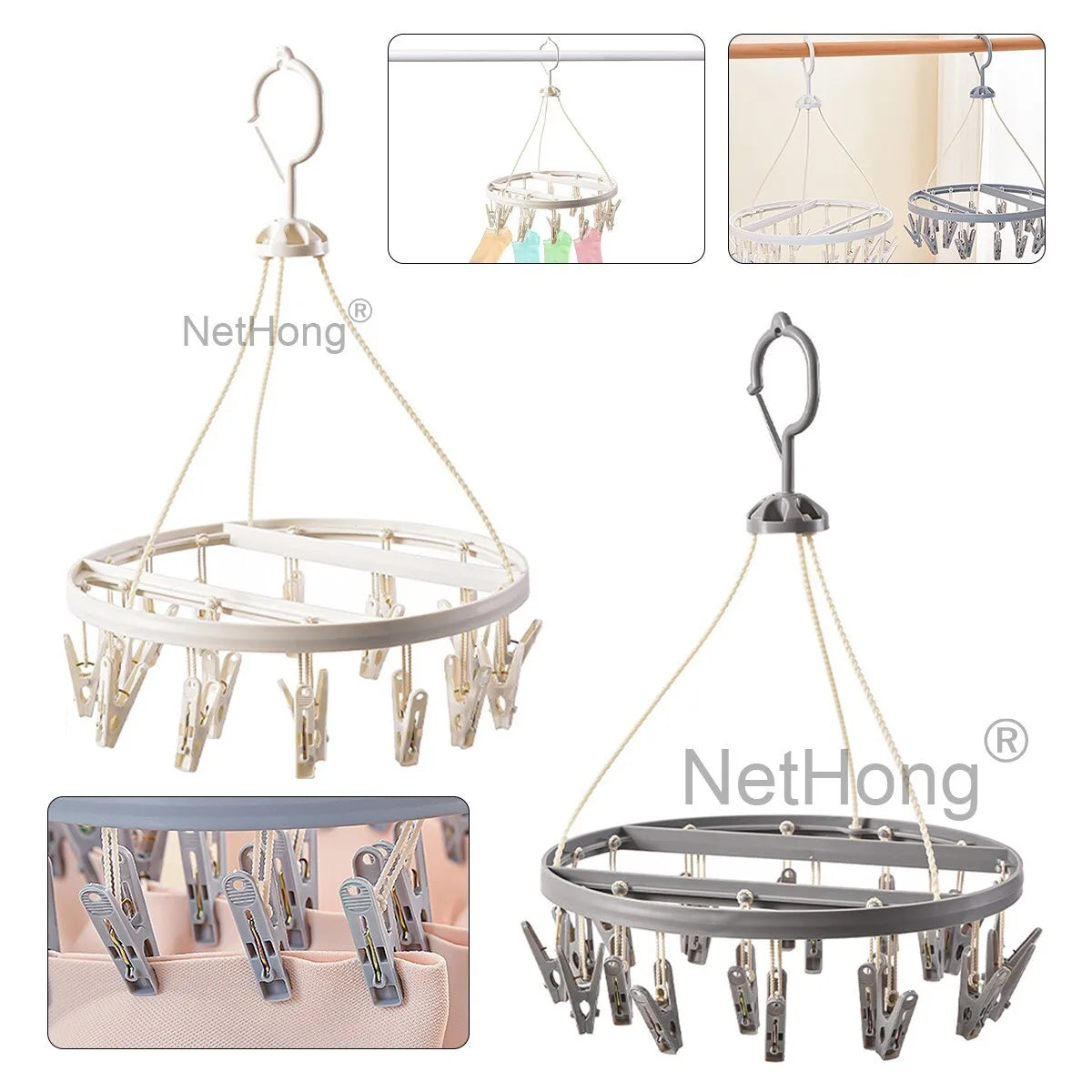 20 Pegs Thickened Laundry Clip Underwear Socks Hanger Airer Cloth Dryer Rack UK
