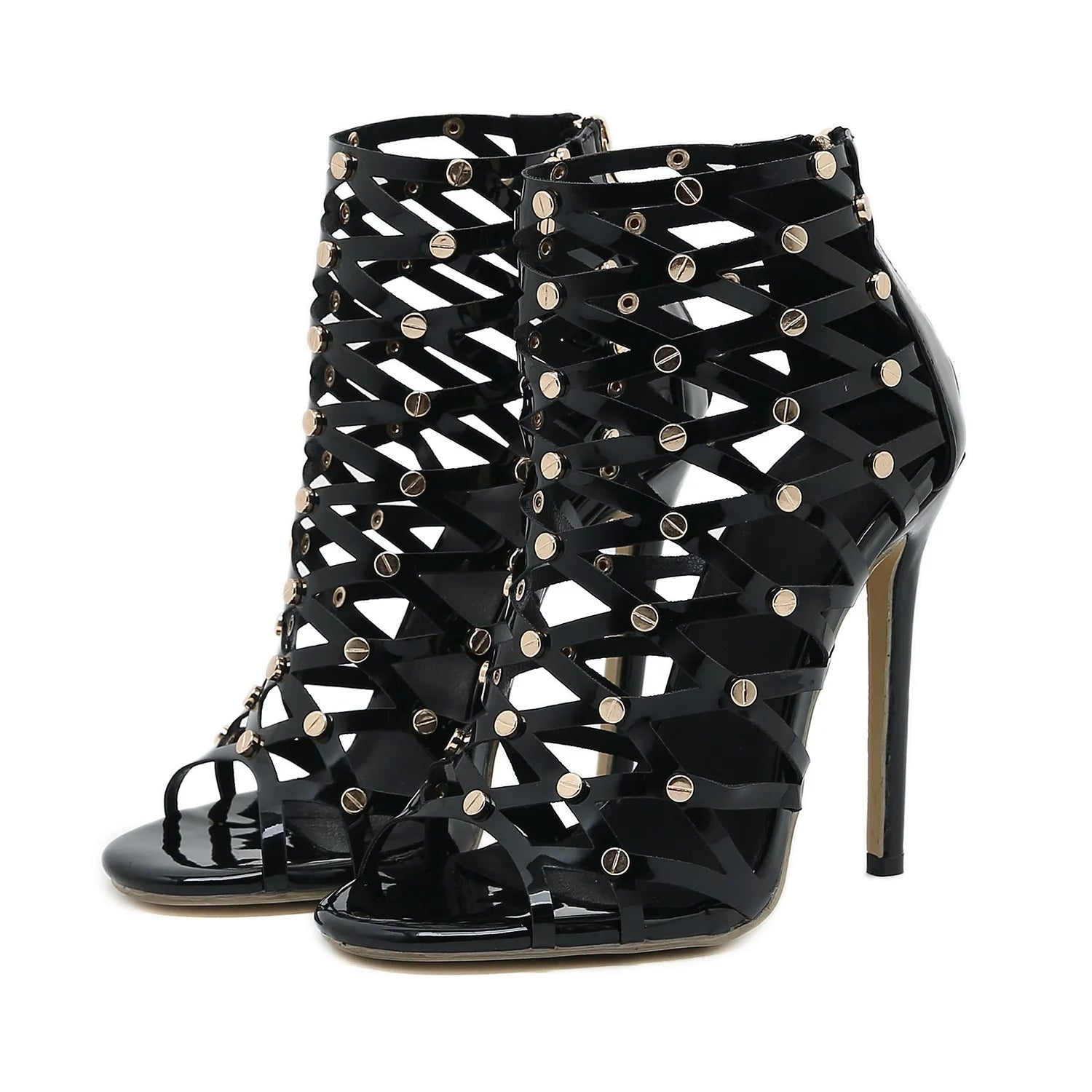 2023 European and American Style Street Photography Simple and Comfortable Hollow Out Nail Sandals Fashion Black High Heels