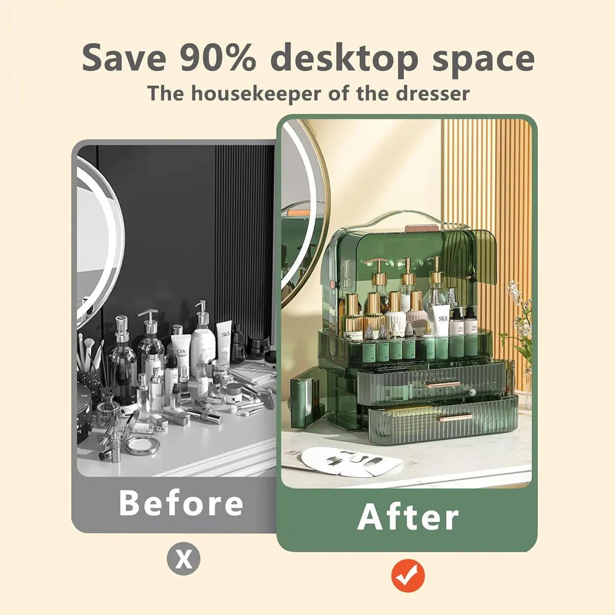 2025 Large White Cosmetic Skincare Organiser Make-Up Storage Case 2 Drawers Box