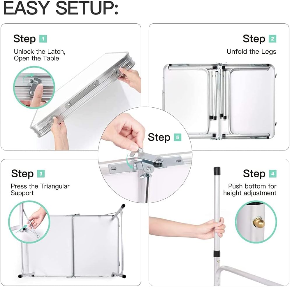 3FT/90CM Picnic Folding Tables, Aluminium Foldable Portable Adjustable Height Lightweight for Camping BBQ, 90x60x37/67cm