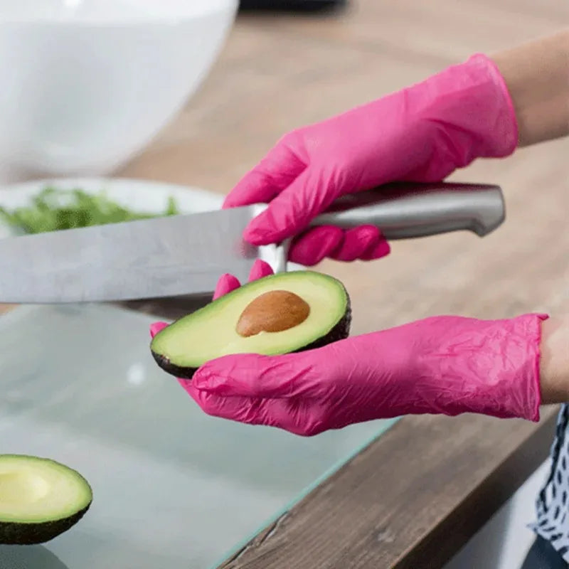50/100PCS Disposable Pink Nitrile Gloves for Hairdressing Manicure Washing Cars Waterproof Dishwashing Kitchen Tools Latex Free