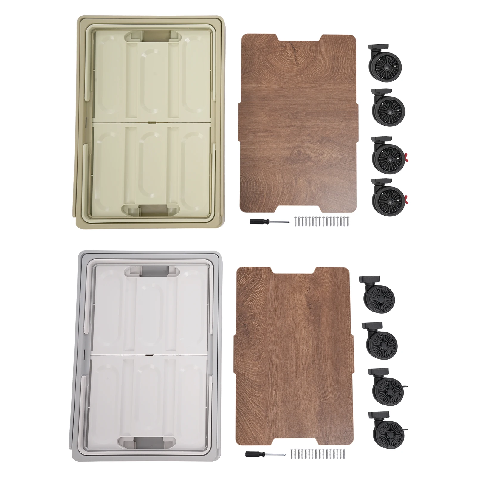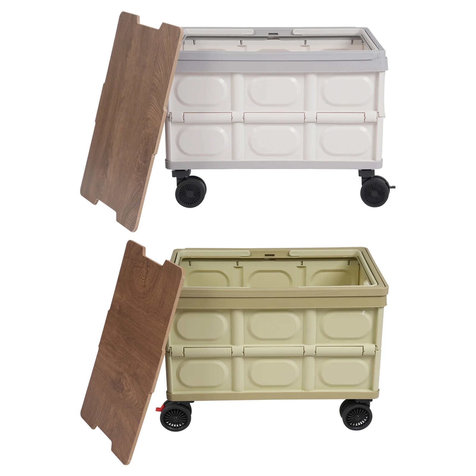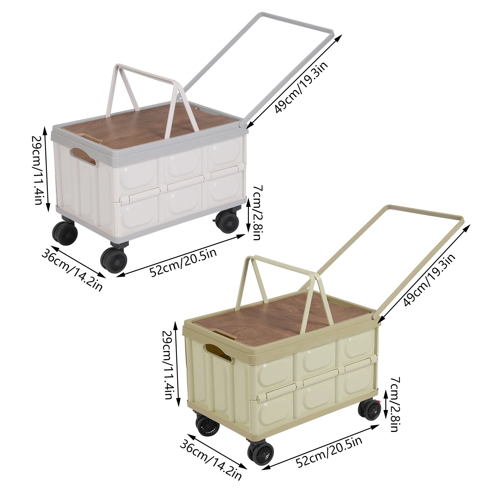 50L Professional Folding Box Rolling Crate Shopping Trolley Foldable Shopping Cart with Lid Big Capacity Container