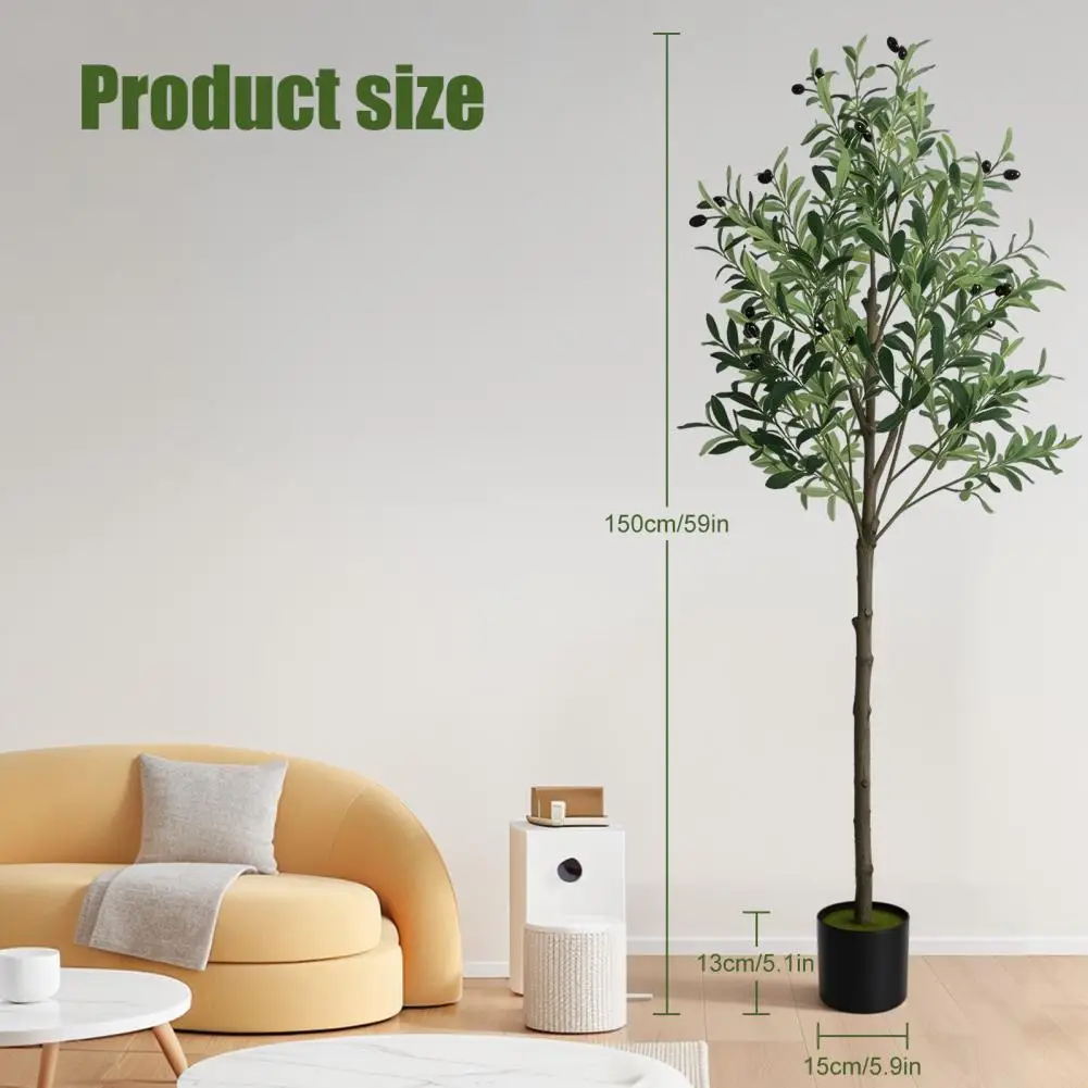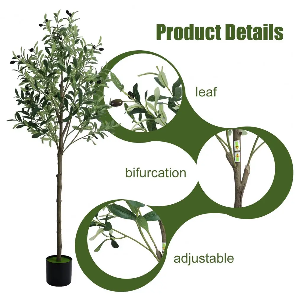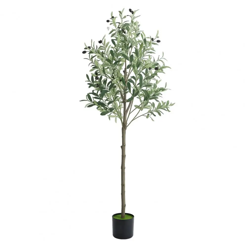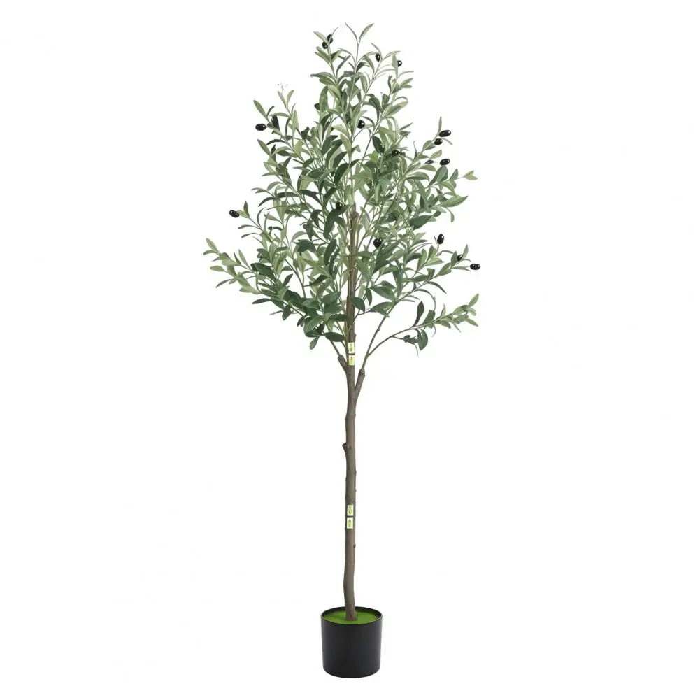 Realistic Simulation: This 5 feet faux olive tree is carefully crafted to mimic the appearance of an olive tree, looking as close to reality as possible. Single trunk splits into several stems, adorned with dozens of olive fruits, which is made of rubber silk fabric. Clearly textured olive leaves and vivid color makes this fake tree a timeless seasonal home decor and will definitely make you feel the existence of nature.