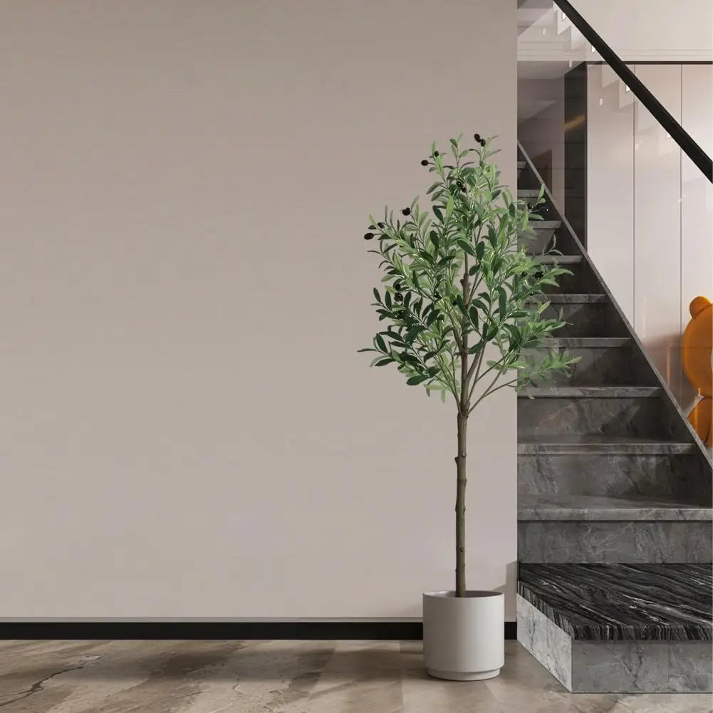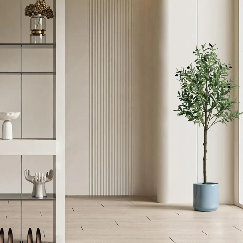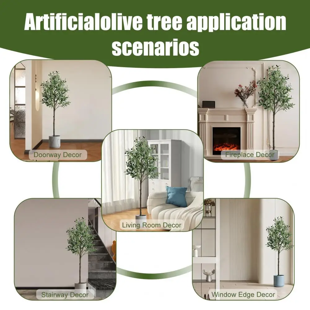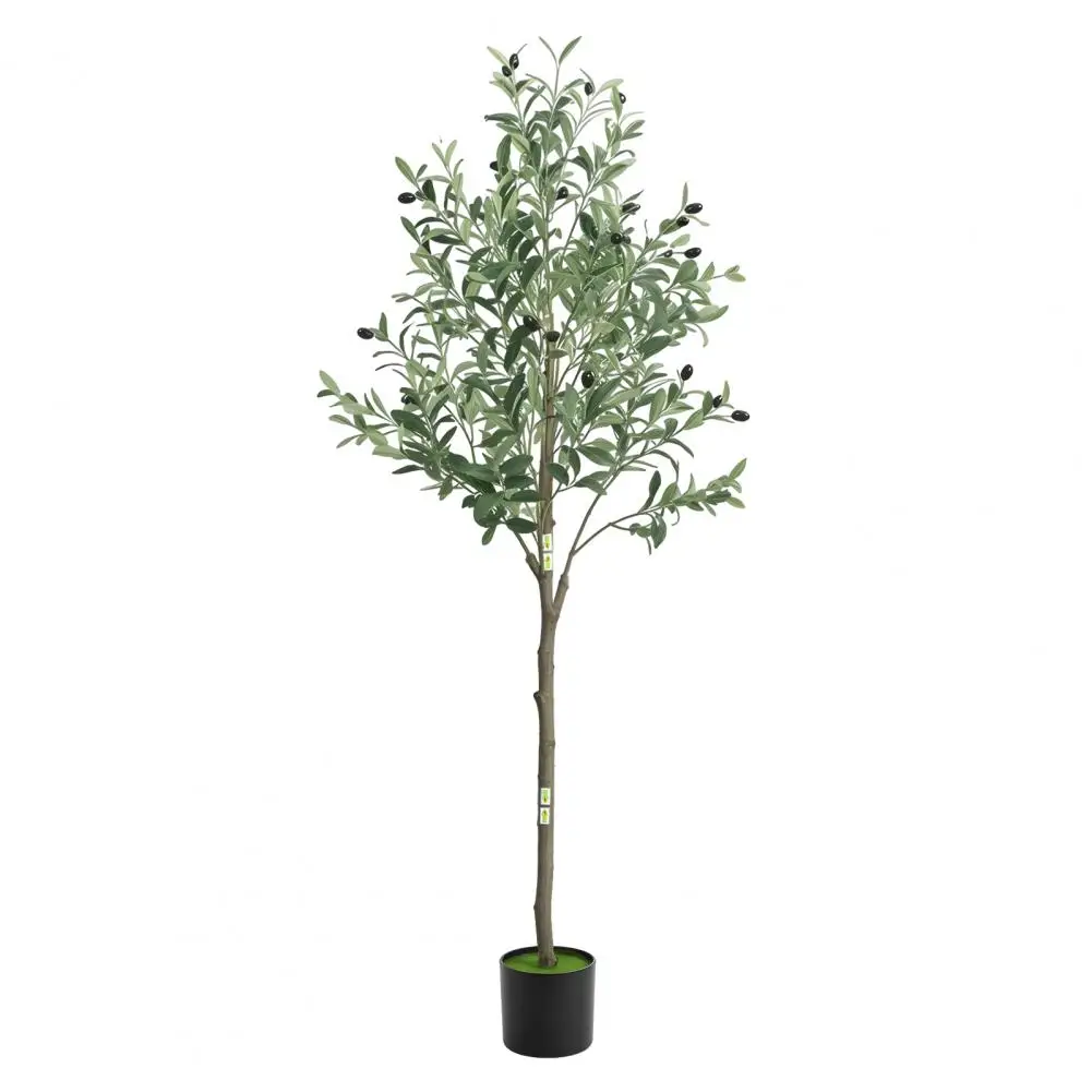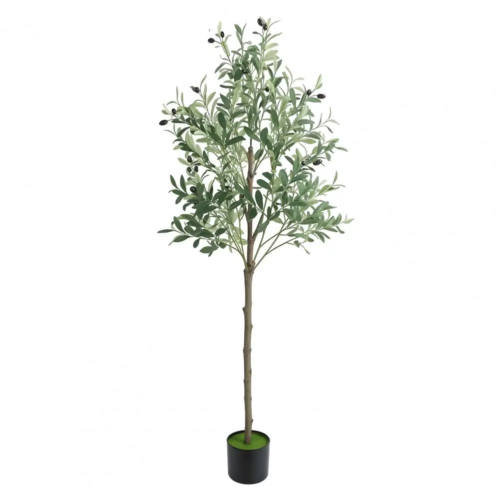 Realistic Simulation: This 5 feet faux olive tree is carefully crafted to mimic the appearance of an olive tree, looking as close to reality as possible. Single trunk splits into several stems, adorned with dozens of olive fruits, which is made of rubber silk fabric. Clearly textured olive leaves and vivid color makes this fake tree a timeless seasonal home decor and will definitely make you feel the existence of nature.