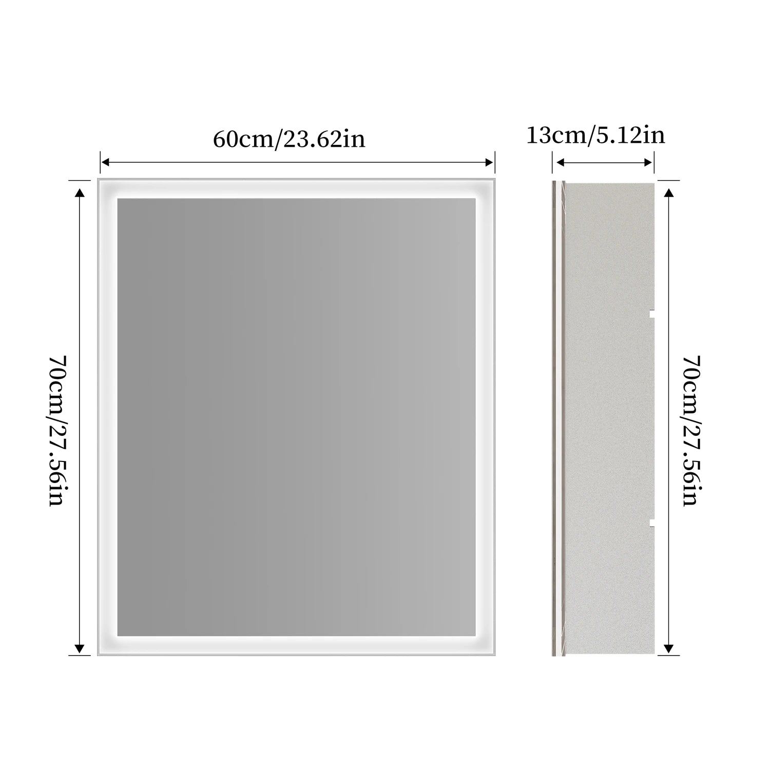 60/70CM Illuminated LED Wall Mirrored Bathroom Storage Medicine Cabinet with Shaver Socket, Bluetooth Speaker Anti-Fog
