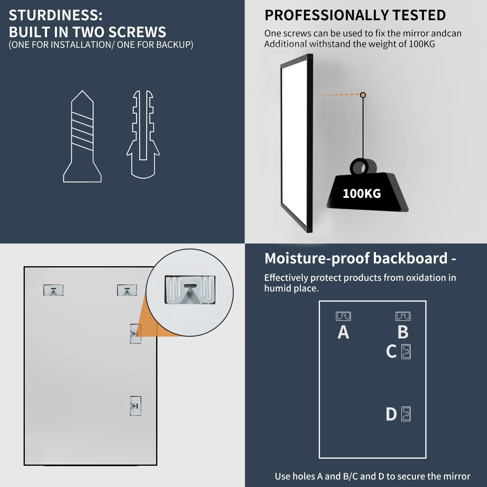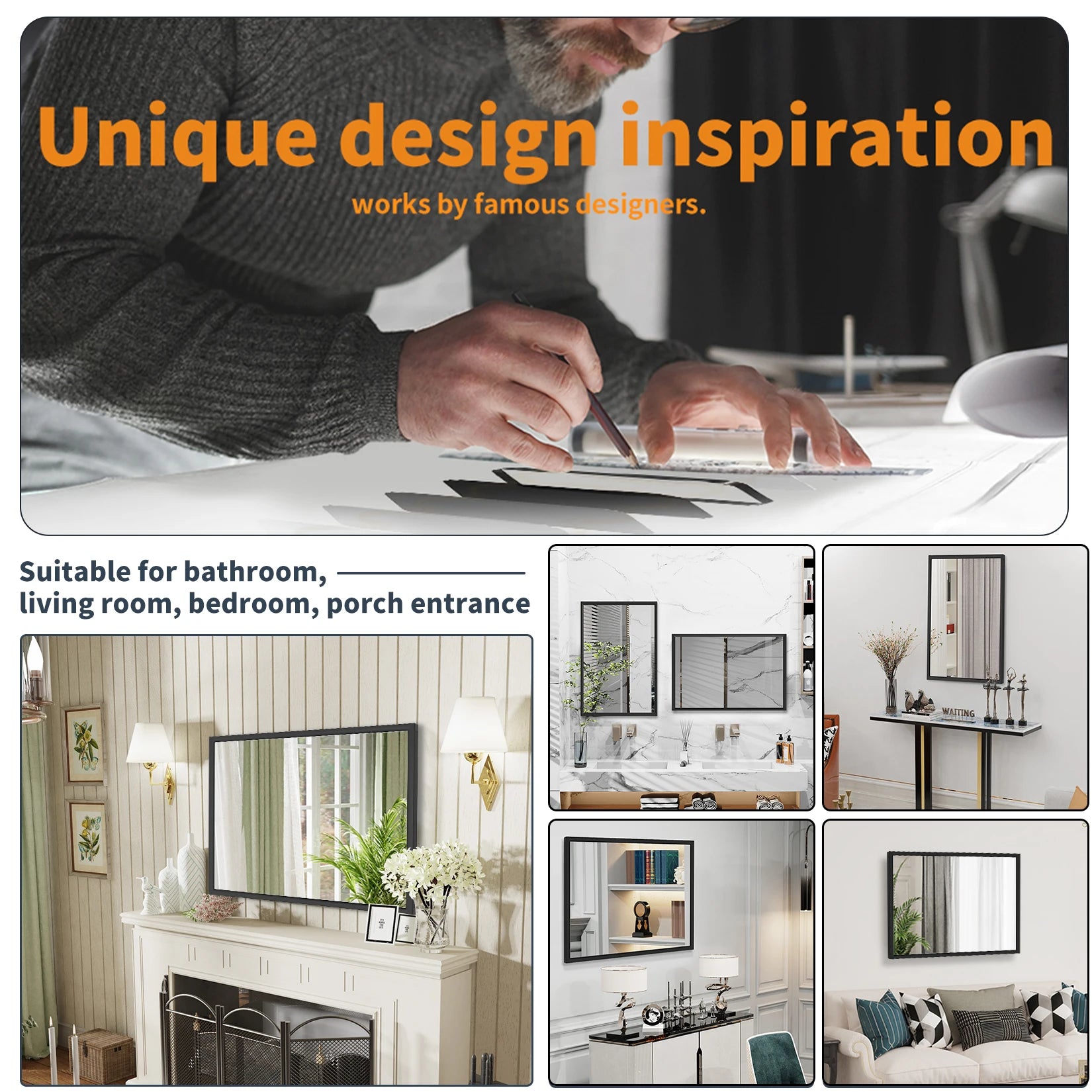 60x90CM Rectangular Wall Mounted Mirror Bathroom Bedroom Makeup Dressing Mirror Black Framed Horizontal or Vertical