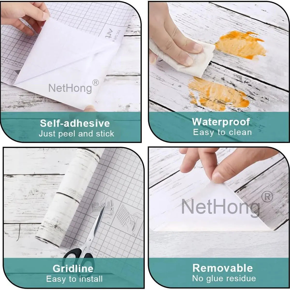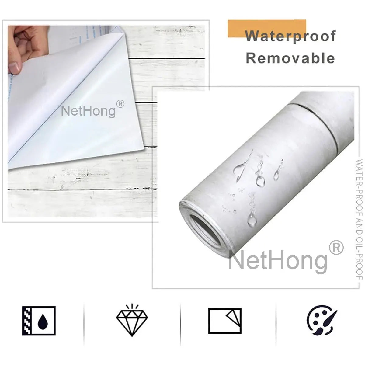 6M Vinyl Ivory white wood grain Wallpaper Stickers Self Adhesive Paper Waterproof