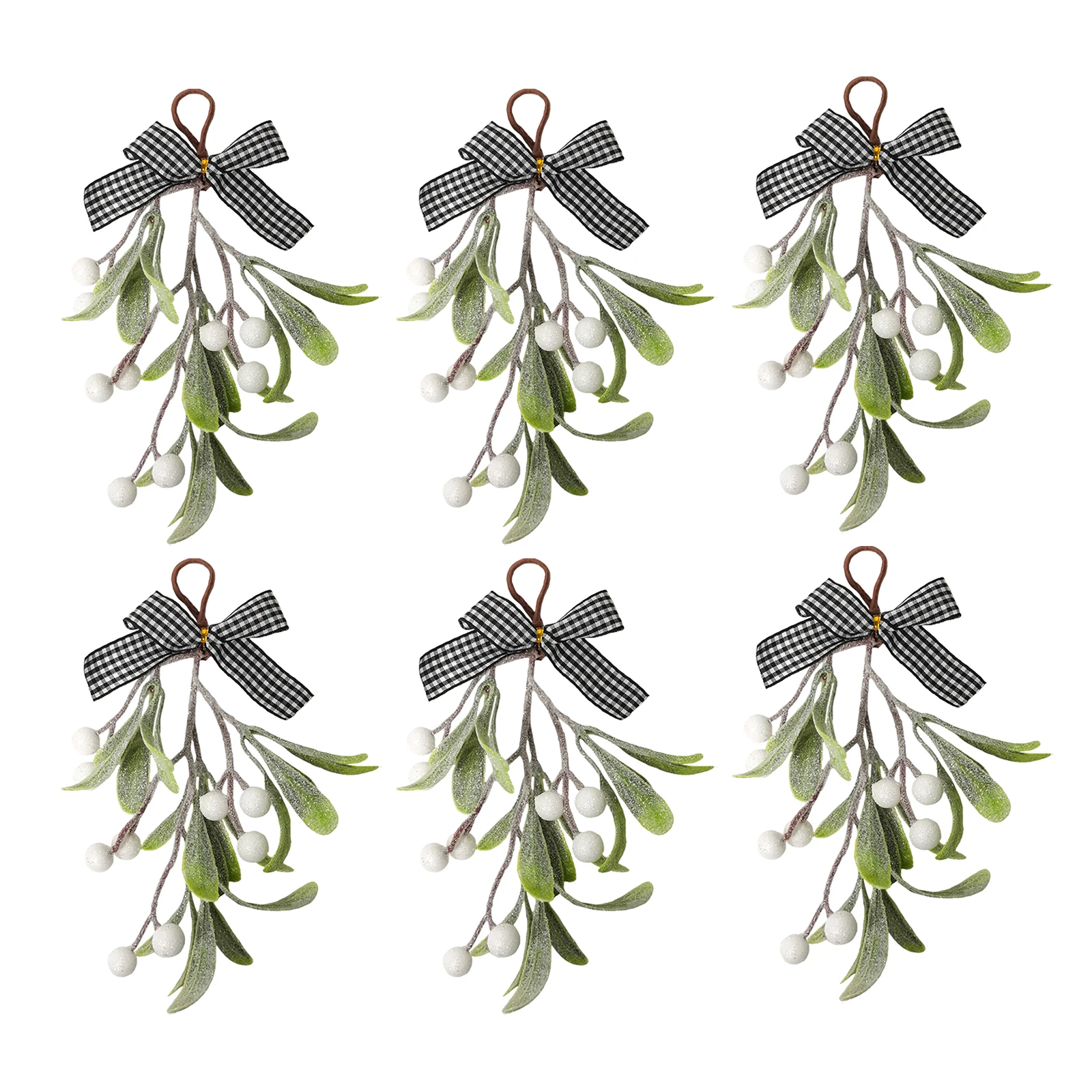 6pcs artificial Christmas Mistletoe hanging ornament Artificial green plant home decoration berry hanging ornament