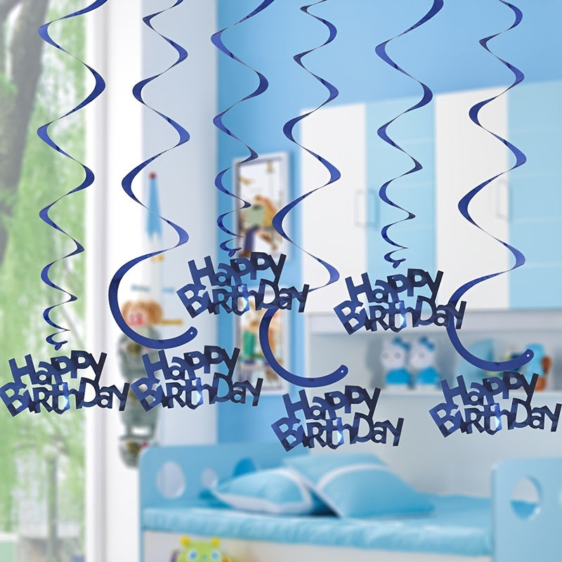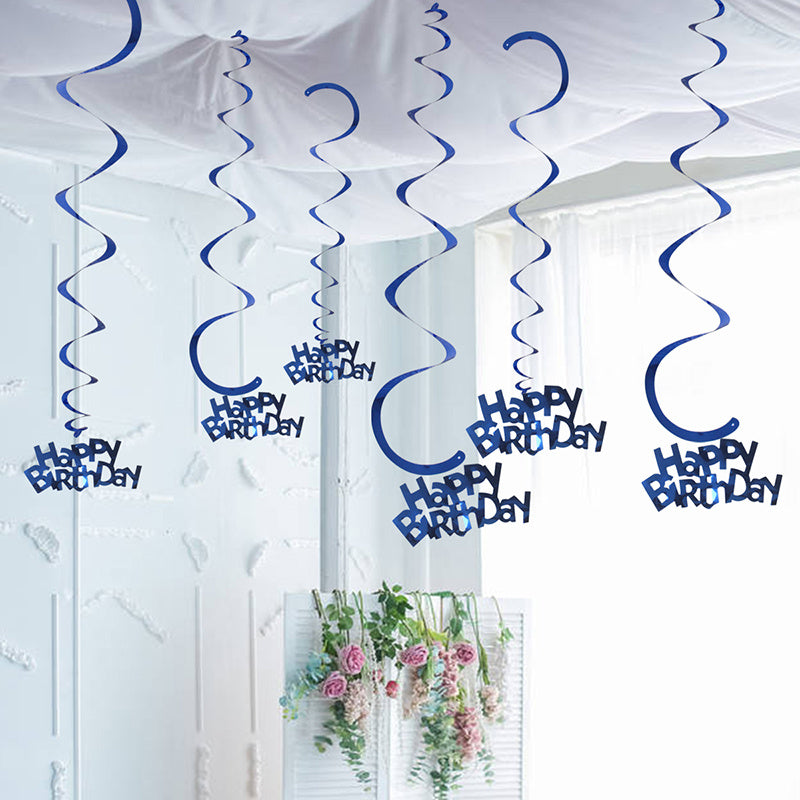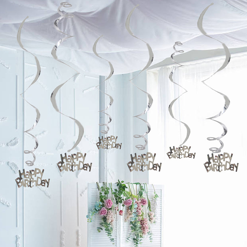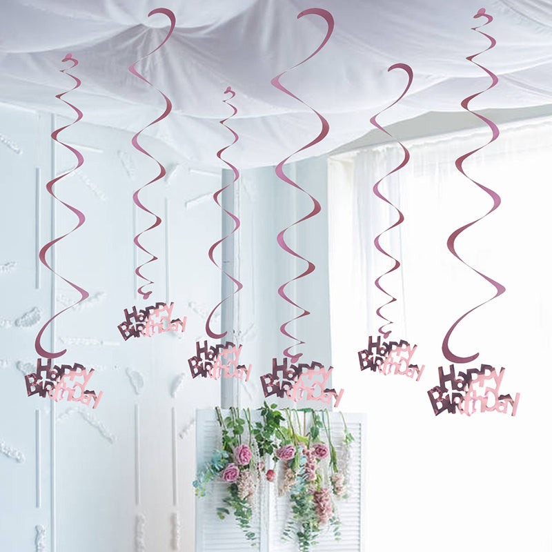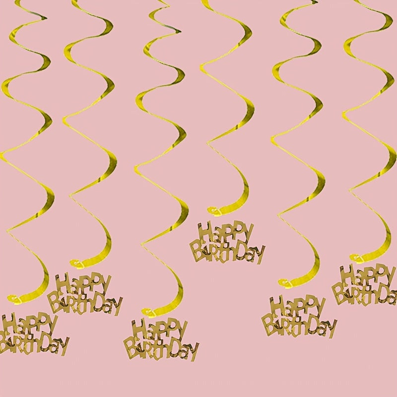 6pcs-Golden, Silvery, Rose Red, Dark Blue, Lake Blue, Rose Golden Birthday Party Spiral Decoration Pendants, Birthday Letter Spiral Decoration
