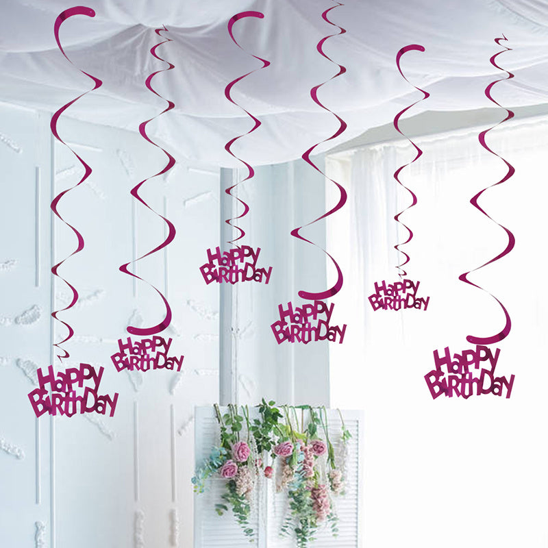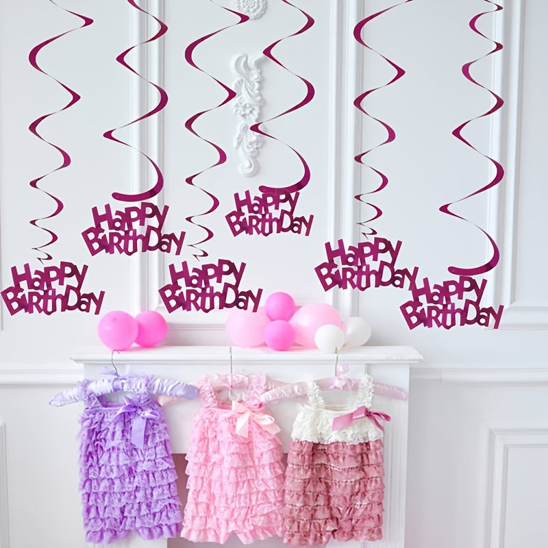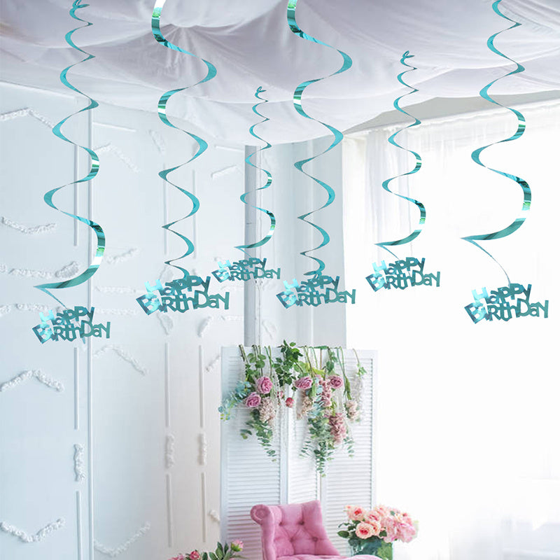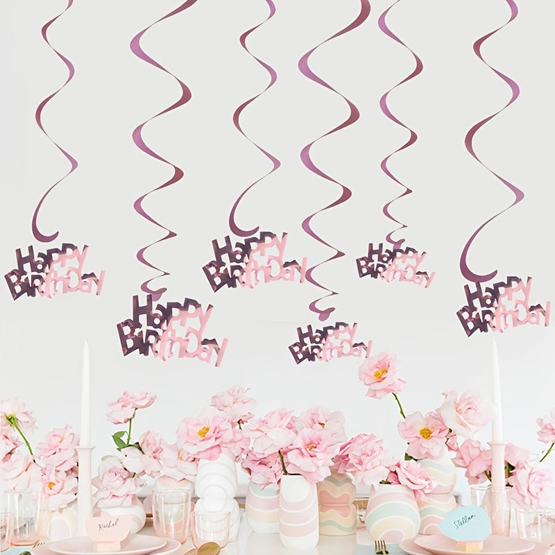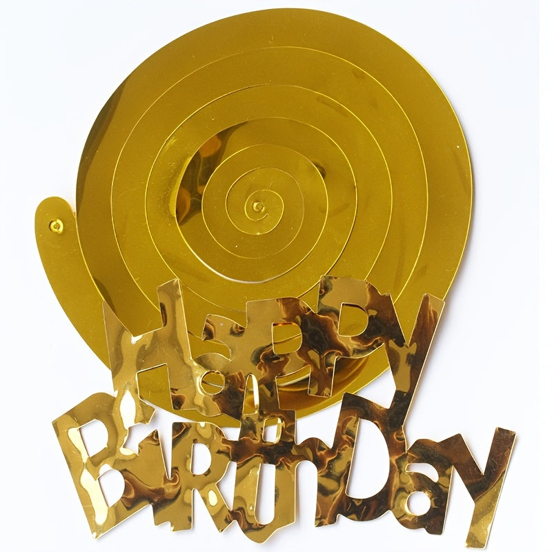 6pcs-Golden, Silvery, Rose Red, Dark Blue, Lake Blue, Rose Golden Birthday Party Spiral Decoration Pendants, Birthday Letter Spiral Decoration