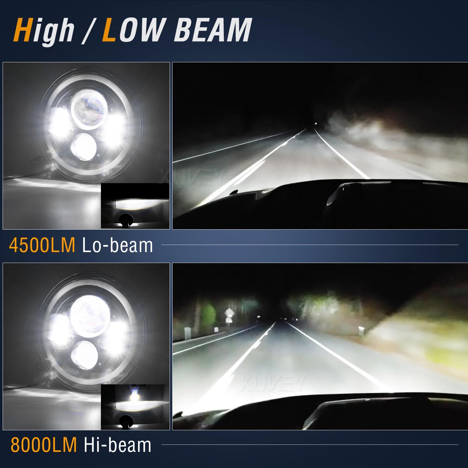 7inch Angel Eyes H4 Led Headlight For Lada Niva 4X4 Uaz Hunter Hummer H1 H2 Wrangler Daytime Running Lights DRL Amber Halo Rings